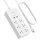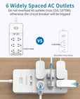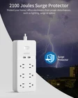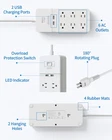About this item: 【2 Prong Extension Cord To 3 Prong Outlets】 - The surge protector power strip deisgn with 2 prong typeA plug, convert a polarized 2 prong outlet to six 3 prong outlets and 2 usb charging ports. Special design for your older house to adapt old two prong outlets. 【2100-joules Surge Protector with Overload Protection】 - USB power strip flat plug with 2100-joules surge-protection rating and integrated 15A circuit breaker safeguards your TV and other household, office devices from voltage fluctuations, surges and spikes.It is ETL Listed and FCC Certificated and made of the top-grade 1382°F Flame-Retardant Materials. 【Wall Mount Power Strip with Design Around Details】 - The low profile flat 180°rotating main plug easily fits in tight spaces like behind couch, dresser, bookshelves or other furniture which is close to the wall not allowing you to use the standard Plug. 2 mounting holes on the back allows you to install this mountable power strip in various applications, including workbenches, desk, wallmounts, under counters, dorm room & more, saving desktop space for you. 【Flat Cord Power Strip Extension Cords 10ft】 - The 10 ft flat extension cord is constructed of super thick copper integrated conductor, improve product transmission efficiency, durability and reduces heat build up. The white extension cord 10ft gives you flexibility to reach distant outlets and hard to reach places. A perfect solution for when power outlets are not conveniently located nearby. 【6 Outlet Power Strip with USB Ports】 - This surge protector extension cord has 6 Widely Spaced AC Outlets which can accommodate slightly larger power adapters (preferably < 1.75” wide) without blocking adjacent outlets. Ideal for charging multiple devices together ( PC, Monitor, Android Box, Echo & more) in living room or nightstand. 2 usb ports can intelligently charge your usb devices WITHOUT a variety of converters, save your space and make your desktop organized. Right-angle Flat 180° rotating plug Special rotating plug design is the perfect solution for tight spaces like behind furniture, cabinets, nightstands or anything which is close to the wall not allowing you to use the standard outlet. The 180 degree angled plug to keep other outlets free, is the ultimate space-saving power strip for your home, hotel, dorm room, or travel. 2100 Joules Surge Protection Equipped with surge protection to prevent from damages caused by spikes, fluctuations. Multi outlet extension cord also has a soft indicator in white to indicate that your electrical devices are protected, as well as one to show that the power is on. 10ft Extra Long Power Cord A 10-foot extra long power cord provides optimal reach on your desk, nightstand, floor, or entertainment center. Perfect solution for awkward outlet locating. We also offer you a roll fastening cable tie as a gift for the flexible power cord management. Mount Anywhere Wall mount charging station has 2 keyhole mounting slots on the back. Included two screws and a mounting template for locating the mounting screws. With a 10 ft flat power cord, it is flexible enough to be settled in various places, such as wall-mount, desk, nightstand, under counters, workbenches, and more, saving desktop space for you. 6 Widely-paced Outlets with 2 USB Ports Larger space between AC outlets (38mm vs. 30mm on regular power strips) can accommodate larger power adapters (preferably less than 1.75” wide) without blocking adjacent outlets. Extension cord surge protector with 6 outlets and 2 USB ports, you can charge 8 devices at the same time, such as your Computer, TV, hair dryer, phone, tablet, Kindle, laptop, camera, humidifier or else. Smart Current Detection The 2 usb Ports knows & distributes exact current your smartphones/ tablets are looking for. Now you can charge your cellphone, laptop, tablet, cameras WITHOUT a variety of converters, save your space and make your desktop organized. Overload Protection Switch The long extension cord power strip has a circuit breaker and an OFF/ RESET switch that automatically shutoff to protect your equipment and home once power overload is detected (rated power: 1875W). The switch on top is designed to be perfectly loose, to ensure it won't get stuck after long time of use. Non-Slip Mats & Flame-Retardant Materials Soft Silicon Non-Slip mats added at the bottom to make the power strip apply to all kinds of desktop closely adhered, in case of scratching and sliding. This power surge protector with long cord is made of fire-resistance ABS+PC shell with flame retardance at 1382℉ makes it more durable and longer lifetime.