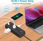 Brand ASMY Color Black-A Total Power Outlets 8 Voltage 5 Volts Special Feature On And Off Switch About this item ☎【Surge Protector Speaker for All】 - 16 outlets surge protector power strip with 1700-joule surge-protection rating provides 3-line comprehensive surge-protection for computer, TV and other household, office electrical appliances from voltage fluctuations, surges and spikes. ☏【Power Strip with 12 Outlets & 4 USB Ports】- 12 AC Surge protector outlets including 3 USB A Ports & 1 USB C Port, 6 feet power cord (1250W/10A), Surge protector indicator and 10A Overload Protector switch protects against spikes and fluctuations.Wide range voltage design, can be used on 120v to 240v circuit. ☎【USB- C Fast & Smart Charge】- 4 USB ports total 3.4 A, each USB A port features 2.4A Max output. USB C charging port features 3A MAX & built-in LED light. Built- with smart technology, detecting charging devices and deliver optimal charging speed automatically, compatible with most USB devices. NOTE: The UCB-C port doesn't support any other devices which need 14~22V charging voltage. ☏【6Ft Upgrded Extension Cord & Wall Mountable】 - The 6ft-long extension cord is made of 14AWG pure copper, which is very thick and has better current carrying capacity (15A). The braided power cord is not easy to deform, durbale and more safety than other power cord. The 45°flat plug will not block the bottom receptacle of your duplex wall outlet. ☎【Overload Protection】 - Intelligent circuitry with built-in voltage sensing detects current power, When the rated power is exceeded, the switch will automatically shutoff to keeps your device safe. 1382℉ fire-resistance PC shell, high-quality components also can prevent your devices from over-current/over-charge/over-heated. Product Description ☎ Power Strip Surge Protector ☏ Power Strip with USB Speaker With 12 AC widely outlets and 4 USB high-speed charging ports. Charge and power up to 16 electrical devices ☏ All-Round Safet Surge protection, overload protection, over-current protection, over-voltage protection, 1382℉ fireproof shell combine to provide superior safety. ☏ Superior Safety Our 8-Point Safety System safeguards your connected devices with a range of safety features including surge protection, grounded protection, fire resistance, and more. ☎ Specifications: Input Voltage: 100-240VAC Max Current: 15A Max Power Rating: 1700W USB Port Output: DC 5V, Total 3.4A Item Dimensions: 8.5*3.1*1.2 INCH ☎ Package list: 1 x Electric Wall Outlet with USB Charger 1 x Instruction manual 1 x Paper Box ☎ Note: Quick Charge and Power Delivery technologies are not supported on the USB-C port when using both ports simultaneously. Do not exceed the total rating or it may cause damage to the unit and fire hazards.