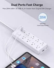 (20W PD Fast Charge) Surge Protector Power Strip with USB, 8 AC Outlet and 3 USB Port Mountable Power Strip, 5FT Extension Cord, Wall Mount, Flat Plug for Home Office School Dorm (6 Screws Included) 【20W Fast & Smart USB Charging】This power strip has 2 USB-C ports with a maximum output of 20W and a USB-A quick charge 3.0 port with a maximum output of 18W. With built-in intelligent charging technology, it can automatically detect and provide the best charging speed for your device, ensuring fast and safe charging. 【Flat Plug Power Strip & 5Ft Extension Cord】- The flat plug power strip is much thinner than traditional plugs, which can easily fit behind furniture or be mounted in tight spaces, allowing for convenient access to power. 5ft extension cord is made of pure copper, which has better current carrying capacity. The flexible power cord is not easy to deform, durable and more safety. 【Easy Mount on Wall and Desk 】- Unique screw fixation design on both end allow this white power strip securely installed in various applications (6 screws included). It is easy for mounting to walls, desks or furniture and offers flexibility in placement, to ensure that your devices are within reach. It's good accessories for college dorm room, home, office, bedroom, kitchen and etc. 【Multi Safety Protection with Switch】- This power strip has surge protection (1600J), overload protection, short-circuit protection, over-current protection. The switch feature allows you to easily turn off the power to all connected devices with a simple flip of a switch. This not only helps conserve energy but also provides an extra layer of safety, especially when you need to temporarily disconnect or deactivate the power strip. 【Suitable for Any Occasions】- With screw fixation design on both end, you can mount on a wall or fixed on the desk easily. Whether it's for home, office, entertainment centers, or any other occasions, this power strip is suitable for powering various devices such as computers, TVs, game consoles, lamps, and more. Its versatile design makes it a practical solution for any setting.