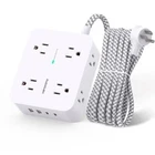 Surge Protector Power Strip - 8 Outlets with 4 USB (2 USB C) Charging Ports, Multi Plug Outlet Extender, 5Ft Braided Extension Cord, Flat Plug Wall Mount Desk USB Charging Station for Home Office ETL 【12 IN 1 Power Strip & 2.2 IN Wide Space】- 3-side design power strip surge protector with 8AC widely outlets and 4 USB (2 USB C) charging ports can power up to 12 devices simultaneously. That makes it easier to make the plugs not covering any outlet, and the 2.2 inchces widely spced in between outlets, larger than standard socket, fit big adapters without blocking each other. The compact design saves more space, suitable for the home, office, and college dorm room essentials 【2 x USB C Power Strip】- Added extra 2 USB C ports for your devices, the USB C port can charge up to 5V/3A. USB-A ports can charge up to 5V/2.4A Max, all USB Ports Output is 5V/3.1A, 15.5W max which is 30% faster than other usb c charging station. With smart charging technology, it can auto-detects your devices and can reach faster charging efficiency, perfectly fit for your iphone, ipad, tablet etc 【Overload Surge Protection】- The surge protector power strip with overload protection protects your electrical appliances from lighting, surges or spikes. The minimum energy-absorbing capacity of 1080 Joules. Lighted on/off switch with integrated circuit breaker for overload protection of all outlets.(The "Surge Protected” indicator light on to show your devices are protected) 【Wall Mountable Extension Cord with Flat Plug】- The low-profile flat plug fits easily in tight spaces; and the right angle flat plug design prevents bottom plug blocking; the 5ft(included the plug) upgraded braided extension cord is very thick and has better current carrying capacity; the two mounting holes on back allows this power strip to be securely installed in various applications 【Multi Safety Protection】- RoHS, ETL Certificates. It will automatically cut power to protect connected devices when voltage surge is overwhelming. Environmental protection and fire-resistance PC shell with flame retardant at 1382℉ makes it more durable and longer lifetime Shipping We ship within 3-5 business days of payment, usually sooner. We use a selection of shipping services such as UPS, FedEx, USPS etc. We only ship to the lower 48 states, no APO/FPO addresses or PO Boxes allowed. Local pickups and combined shipping options are not provided at this time. Return You can return a product for up to 30 days from the date you purchased it. Any product you return must be in the same condition you received it and in the original packaging. Please keep the receipt. Payment We accept payment by any of the following methods: Pay Pal Credit Card Please pay as soon as possible, as that will allow us to post your item to you sooner! Feedback Customer satisfaction is very important to us. If you have any problem with your order, please contact us and we will do our best to make you satisfied. Contact Us If you have any queries, please contact us via ebay. We usually respond within 24 hours on weekdays. Please visit our eBay store to check out other items for sale! Thank you for shopping at our store. Mufasa International- Feel Joy With Every Purchase