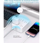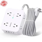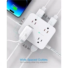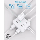 【 12 IN 1 Power Strip & 2.2 IN Wide Space 】 - 3-side design power strip surge protector with 8AC widely outlets and 4 USB (2 USB C) charging ports can power up to 12 devices simultaneously. That makes it easier to make the plugs not covering any outlet, and the 2.2 inchces widely spced in between outlets, larger than standard socket, fit big adapters without blocking each other. The compact design saves more space, suitable for the home, office, and college dorm room essentials 【 2 x USB C Power Strip 】 - Added extra 2 USB C ports for your devices, the USB C port can charge up to 5V/3A. USB-A ports can charge up to 5V/2.4A Max, all USB Ports Output is 5V/3.1A, 15.5W max which is 30% faster than other usb c charging station. With smart charging technology, it can auto-detects your devices and can reach faster charging efficiency, perfectly fit for your iphone, ipad, tablet etc 【 Overload Surge Protection 】 - The surge protector power strip with overload protection protects your electrical appliances from lighting, surges or spikes. The minimum energy-absorbing capacity of 1080 Joules. Lighted on/off switch with integrated circuit breaker for overload protection of all outlets.(The "Surge Protected” indicator light on to show your devices are protected) 【 Wall Mountable Extension Cord with Flat Plug 】 - The low-profile flat plug fits easily in tight spaces; and the right angle flat plug design prevents bottom plug blocking; the 5ft upgraded braided extension cord is very thick and has better current carrying capacity; the two mounting holes on back allows this power strip to be securely installed in various applications 【 Multi Safety Protection 】 - RoHS, ETL Certificates. This power strip has overload protection, short-circuit protection, over current protection, over-voltage protection and overheating protection. It will automatically cut power to protect connected devices when voltage surge is overwhelming. Environmental protection and fire-resistance PC shell with flame retardant at 1382 ℉ makes it more durable and longer lifetime