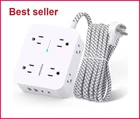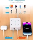 Free eBay listing template designed by dewiso.com Surge Protector Power Strip - 8 Outlets with 4 USB (2 USB C) Charging Ports, Mul 【12 IN 1 Power Strip with USB】- The 3-side power strip surge protector with 8AC widely outlets and 4 USB charging ports(Total 5V/3.1A) can power up to 12 devices simultaneously. With built in Smart IC technology, the usb port can auto detect and deliver appropriate current to your devices, each port up to 5V/2.4A max 【3 Side Design & 2.2 IN Wide Space】- 3-side design power strip that makes it easier to make the plugs not covering any outlet, and the 8 AC outlets with 2.2 inchces widely spced in between outlets, larger than standard socket, fit big adapters without blocking each other. The compact design saves more space, suitable for the home, office, and college dorm room essentials 【Overload Surge Protection】- The surge protector power strip with overload protection protects your electrical appliances from lighting, surges or spikes. The minimum energy-absorbing capacity of 900 Joules. Lighted on/off switch with integrated circuit breaker for overload protection of all outlets.(The "Surge Protected” indicator light on to show your devices are protected) 【Wall Mountable Extension Cord with Flat Plug】- The low-profile flat plug fits easily in tight spaces; and the right angle flat plug design prevents bottom plug blocking; the 5ft upgraded braided extension cord is very thick and has better current carrying capacity; the two mounting holes on back allows this power strip to be securely installed in various applications 【Multi Safety Protection】- RoHS, ETL Certificates. This power strip has overload protection, short-circuit protection, over current protection, over-voltage protection and overheating protection. It will automatically cut power to protect connected devices when voltage surge is overwhelming. Environmental protection and fire-resistance PC shell with flame retardant at 1382℉ makes it more durable and longer lifetime.