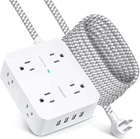 This HANYCONY charging port power strip has 8 outlets and 4 USB ports, including 2 USB-C ports, allowing you to charge multiple devices at once. The strip is designed for use in the United States and has a white color. It has a cable length of 10ft and an input voltage of 125v. This power strip is perfect for those who need to charge multiple devices in one location, such as in a home or office. Its features include USB ports and it is ideal for use with electrical supplies. It falls under the categories of Power Strips & Surge Protectors, Power Strips, Extension Cords & Adapters, and Electrical Supplies. It also comes with an ON / OFF feature.