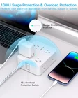 【12 IN 1 Power Strip & 2.2 IN Wide Space】- 3-side design power strip surge protector with 8AC widely outlets and 4 USB (2 USB C) charging ports can power up to 12 devices simultaneously. That makes it easier to make the plugs not covering any outlet, and the 2.2 inchces widely spced in between outlets, larger than standard socket, fit big adapters without blocking each other. The compact design saves more space, suitable for the home, office, and college dorm room essentials 【2 x USB C Power Strip】- Added extra 2 USB C ports for your devices, the USB C port can charge up to 5V/3A. USB-A ports can charge up to 5V/2.4A Max, all USB Ports Output is 5V/3.1A, 15.5W max which is 30% faster than other usb c charging station. With smart charging technology, it can auto-detects your devices and can reach faster charging efficiency, perfectly fit for your iphone, ipad, tablet etc 【Overload Surge Protection】- The surge protector power strip with overload protection protects your electrical appliances from lighting, surges or spikes. The minimum energy-absorbing capacity of 1080 Joules. Lighted on/off switch with integrated circuit breaker for overload protection of all outlets.(The "Surge Protected” indicator light on to show your devices are protected) 【Wall Mountable Extension Cord with Flat Plug】- The low-profile flat plug fits easily in tight spaces; and the right angle flat plug design prevents bottom plug blocking; the 5ft upgraded braided extension cord is very thick and has better current carrying capacity; the two mounting holes on back allows this power strip to be securely installed in various applications 【Multi Safety Protection】- RoHS, ETL Certificates. This power strip has overload protection, short-circuit protection, over current protection, over-voltage protection and overheating protection. It will automatically cut power to protect connected devices when voltage surge is overwhelming. Environmental protection and fire-resistance PC shell with flame retardant at 1382℉ makes it more durable and longer lifetime