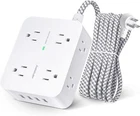 【12 IN 1 Power Strip with USB】- The 3-side power strip surge protector with 8AC widely outlets and 4 USB charging ports(Total 5V/3.1A) can power up to 12 devices simultaneously. With built in Smart IC technology, the usb port can auto detect and deliver appropriate current to your devices, each port up to 5V/2.4A max 【3 Side Design & 2.2 IN Wide Space】- 3-side design power strip that makes it easier to make the plugs not covering any outlet, and the 8 AC outlets with 2.2 inchces widely spced in between outlets, larger than standard socket, fit big adapters without blocking each other. The compact design saves more space, suitable for the home, office, and college dorm room essentials 【Overload Surge Protection】- The surge protector power strip with overload protection protects your electrical appliances from lighting, surges or spikes. The minimum energy-absorbing capacity of 900 Joules. Lighted on/off switch with integrated circuit breaker for overload protection of all outlets.(The "Surge Protected” indicator light on to show your devices are protected) 【Wall Mountable Extension Cord with Flat Plug】- The low-profile flat plug fits easily in tight spaces; and the right angle flat plug design prevents bottom plug blocking; the 5ft upgraded braided extension cord is very thick and has better current carrying capacity; the two mounting holes on back allows this power strip to be securely installed in various applications 【Multi Safety Protection】- RoHS, ETL Certificates. This power strip has overload protection, short-circuit protection, over current protection, over-voltage protection and overheating protection. It will automatically cut power to protect connected devices when voltage surge is overwhelming. Environmental protection and fire-resistance PC shell with flame retardant at 1382℉ makes it more durable and longer lifetime.