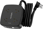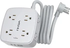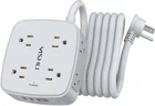 6 Ft Surge Protector Power Strip - 8 Widely Outlets with 4 USB Ports, 3 Side Outlet Extender with 6 Feet Extension Cord, Flat Plug, Wall Mount, Desk USB Charging Station, ETL,White 【4+4 Outlets Power Strip with 4 USB Ports】- The 3-side power strip with 8AC widely outlets and 4 USB charging ports total 4.2A, each USB A port features 5V/2.4A Max output. USB C charging port features 5V/3A MAX. can power up to 12 devices simultaneously.Wide range voltage design, can be used on 120v to 240v circuit. 【Surge Protector Power Strip with 3 Side Design & Wide Space】- 3-side design that makes it easier to make the plugs not covering any outlet, and the 8 AC outlets with 1.8 inches long space in between, larger than standard 1.5-inch socket. Larger spacing makes it easier to use for all kinds of equipment.The compact design saves more space, suitable for the home, office, and college dorm room. 【Multi Safety Protection】- RoHS, FCC and ETL Certificates. This power strip has overload protection, short-circuit protection, over current protection, over-voltage protection and overheating protection. The surge protector with overload protection protects your electrical appliances from lighting, surges or spikes. The minimum energy-absorbing capacity of 600 Joules. It will automatically cut power to protect connected devices when voltage surge is overwhelming. 【6 Ft extension cord with Flat Plug and Cable Ties】- 6 Feet Right Angled Flat Plug power cord makes it more flexible ,Reusable Fastening Cable Ties Can tie up the unused cord and make it better organized. he two mounting holes on back allows this power strip to be securely installed in various applications. 【 Our After Sale Service 】- RoHS, FCC and ETL Certificates. Our friendly and reliable customer service will respond to you within 24 hours. You can purchase with confidence, with our 30-day return and 12-month replacement. Product Description 6 Ft Surge Protector Power Strip with 8 Widely Outlets and 4 USB Ports Specifications: Input Voltage: 100-240VAC; 60HZ Max.Current: 10A Max.Power Rating: 1250W USB Port Output: DC 5V, Total 4.2A Cord Length: 6 Ft Surge Protection Rating: 600 Joules Power Strip Surge Protector with 6 FT Flat Plug Extension Cord Built-in 600 Joules Surge Pretector Power Strip with 8 Outlets and 4 USB charging ports The 3-side design that makes it easier to make the plugs not covering any outlet, and the 8 AC outlets with 1.78 inches long space in between, larger than standard 1.5-inch socket. Larger spacing makes it easier to use for all kinds of equipment. 3USB A charging ports and 1USB C charging Port total 4.2A, each USB A port features 5V/2.4A Max output. USB C charging port features 5V/3A MAX. Can power up to 12 devices simultaneously.Wide range voltage design, can be used on 120v to 240v circuit. 8 AC Outlet Extender 3 USB A & 1 USB C Smart Charging Ports 1.78 inches Wide Space AC Outlet 6 Ft extension cord with Flat Plug and Cable Ties Surge Protection LED Indicator Item Dimensions: 4.33*4.05*1.65 inches