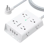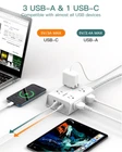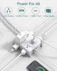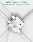 【12 IN 1 Power Strip with USB-C】- 3-side power strip with 8 AC outlets and 4 USB ports can power up 12 devices simultaneously. USB C charging port features 3A Max, USB A charging port features 2.4A Max, compatible with almost all usb devices(the actual current is decided by the demand for the devices) 【Wide Space Outlets & Space Save】- 3-side design and each AC outlets with 2 inches space in between, larger than standard 1.5-inch socket. Making it enough to fit big adapters and suitable for all kinds of equipment. The compact size (5.2*3.7*1.2 In) saves more space, essential for the home, office, and college dorm 【Easy Mountable Design】- No need to measure and guess where you had to attach screws , this power strip have screw fixation design on both end, you can mount on a wall or fixed on the desk easily. And It is very convenient and practical to install on office desks, TV walls or tool walls 【Overload Surge Protection】- 3 complementary surge protection circuits(TVS MOV GDT) with the minimum energy-absorbing capacity of 1080 Joules. Overload protection ON/OFF switch can shutoff automatically to keeps your device safe. This flat power strip is also protected against over-voltage, over-current, over-charge, short-circuiting 【5ft Flat Plug Extension Cord】- Low-profile flat plug fits easily in tight spaces. Angled flat plug design prevents bottom plug blocking. 5 Ft upgraded braided extension cord is more flexible and durable and has better current carrying capacity