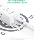 Surge Protector Power Strip - 9 Widely Spaced Multi Outlets, Wall 5 FT, White Product Details Product Dimensions: 6.49 x 1.8 x 0.04 inches Item Weight: 11.5 ounces Item model number: LF50 Manufacturer: MIFASOPOWER Country of Origin: China Brand: Mifaso Cable Length: 5 Feet Color: White Total Power Outlets: 9 Voltage: 125 Volts 【9 IN 1 Power Strip Surge Protector】- The 3-side power strip features 9AC widely spaced outlets (1625W/125V/13A), 5 feet power cord, 900 Joules surge protector and overload protector switch protects against spikes and fluctuations. 【3 Side Design & Wide Spaced Outlets】- 9 AC outlets with long space in between, fit all kinds of plugs and without blocking each other. Takes up less space on your desk or wall due to this compact 3-sided design, suitable for the home, office, and dorm room. 【Surge Protection & Overload Protection】- 900 Joules surge protector with overload protection protects your electrical appliances from lighting, surges or spikes. The reset/off switch with integrated circuit breaker for overload protection of all outlets. 【Easy Mountable Design & Flat Plug】- The low-profile flat plug fits easily in tight spaces, 45° right angle plug design prevents other plugs blocking. The two mounting holes allows this power strip to be installed on the wall or desk easily without measuring. 【Multi Safety Protection】- ETL Certificates. This flat plug power strip has overload protection, short-circuit protection, over current protection, over-voltage protection and overheating protection. It will automatically cut power to protect connected devices when voltage surge is overwhelming. Fire-resistant shell and built-in safety system provides you and your devices with complete protection.