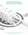 【9 IN 1 Power Strip Surge Protector】- The 3-side power strip features 9AC widely spaced outlets (1625W/125V/13A), 5 feet power cord, 900 Joules surge protector and overload protector switch protects against spikes and fluctuations. 【3 Side Design & Wide Spaced Outlets】- 9 AC outlets with long space in between, fit all kinds of plugs and without blocking each other. Takes up less space on your desk or wall due to this compact 3-sided design, suitable for the home, office, and dorm room. 【Surge Protection & Overload Protection】- 900 Joules surge protector with overload protection protects your electrical appliances from lighting, surges or spikes. The reset/off switch with integrated circuit breaker for overload protection of all outlets. 【Easy Mountable Design & Flat Plug】- The low-profile flat plug fits easily in tight spaces, 45° right angle plug design prevents other plugs blocking. The two mounting holes allows this power strip to be installed on the wall or desk easily without measuring. 【Multi Safety Protection】- ETL Certificates. This flat plug power strip has overload protection, short-circuit protection, over current protection, over-voltage protection and overheating protection. It will automatically cut power to protect connected devices when voltage surge is overwhelming. Fire-resistant shell and built-in safety system provides you and your devices with complete protection.