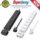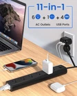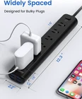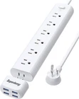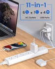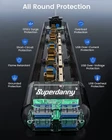 Product Description Surge Protector Power Strip Extension Cord - SUPERDANNY 7 AC Outlet Extender with 4 Detachable USB Ports, 4Ft Cord, Flat Plug, Wall Mount Desk Charging Station for Home, Office Dorm Essentials Power Plug Type Type B - 3 pin (North American) Brand SUPERDANNY Color Black / White Maximum Surge Rating 1050Joules About this item USB-Detachable Power Strip - Unique designed. You get a power strip surge protector with 6 AC outlets and 4 USB ports. But when it is detached, you get a power strip with 7 AC outlets and a wall charger with 4 USBs. No more bulky charger adapters for USB devices, no more arguing and searching for electrical outlets, this USB-detachable power strip is utility and handy to carry around. Widely Spaced Outlets - The space between each plug outlet is 1.5 inches, which fits bulkier plugs without blocking other outlets. The size of this USB power strip is 12.3* 2.2* 1.2 in, compact and space-saving. Essential for home, office, college dorm, RV, hotel, garage, and workshop. All Round Protection - Sudden increases in voltage can damage your electronics, this flat plug power strip is equipped with 1050-joule surge protectors to keep protect your devices from sudden surges and spikes. Other safety features include USB overheat, USB over-current, USB over-voltage, overload, grounded and short-circuit protection, have peace of mind when use. Smart USB Charging - Not need to find adapters or plugs for your USB devices. This power strip flat plug is a nice upgrade since there are 4 USB charging ports, and the USB part is detachable. The built-in smart charging technology allows the USB charger station to detect your devices automatically and deliver the fastest possible charge up to 5V/2.4A per port. Easy to Mount - There are 2 keyholes on the back, so you can mount this flat extension cord onto the wall or furniture easily, make the space more tidy and orderly. Perfect for phone, headphone, tablet, PC, laptop, gaming computers, lamps, gaming or media set up, TV, and other devices. 1 Power Strip, 2 Uses Unique and functional design. This extension cord with multiple outlets can be a power strip with 6 three-prong outlets and 4 USB ports when combined together. When it is detached, you get a power strip with 6 three-pronged outlets and 1 two-pronged one, and a wall outlet extender with 4 USB ports. No more bulky charger blocks or adapters for your USB devices. No more arguing and searching for electrical outlets, a power strip and a USB wall charger station can be used in different rooms. Handy to carry around, great accessibility, and utility. How does a 1050J Surge Protector Power Strip protect? Surges are often associated with lightning strikes, power-hungry appliances, bad wiring, and problems with the power grid itself. Whenever the 1050J surge protector detects a surge, it actually shunts the extra electricity through a semiconducting material to a grounding wire. This will send excess voltage back to the return line in the building's wiring, which might trip a circuit breaker, but won't damage whatever is plugged into the surge protector. Specifications AC Input/Output: 110-240V, 50/60Hz, Max 10A USB Output: Max 2.4A/Port, 3.4A Shared Rated Power: 1250W in US/Canada, Max 2400W Worldwide Surge Protection: 1050 Joules Product Size: 12.3“ * 2.2” * 1.2“ Cord Length: 4 ft (1.2m) Plug Type: 45° Angled Type B - 3 pin (North American) More Details Portable USB Charging Station Ditch adapters or plugs for your USB devices! This USB charging station for multiple devices offers power for 4 USB devices while coming in a compact size (1.5” X 2.2” X 1.2”). High-Temperature Resistant PC Shell The power plug adapter is encased in PC material (Fire-proof rating: UL94 V-0, the highest level of fire resistance ) to ensure a safe use without the fire hazards. Glare-Free Power Indicator The power indicator lights up to tell you the power bar is powered on, and it is soft green so as not to affect your good sleep. Right Angled Flat Plug Goes sideways instead of straight down. This is especially useful for a duplex outlet when the bottom receptacle has another flat plug. Mountable Power Strip There are 2 keyholes on the back of this USB extension cable with multiple ports, so you can mount it with 2 screws (not included) on the wall behind the TV, under the desk/cabinet, or beside the workbench /nightstand. Anti-Skid Rubber Feet There are 2 rubber pads on the back, thick and durable to keep the desktop multi-plug outlet power strip put on the stable, without scratching the surface. About Us Payment Shipping Returns Working Time We're an authorized seller by JACKYLED, a 10-year lighting and power solutions provider. We're dedicated to offering safer, easier, smarter access to light and power with quality products at affortable prices. Let's grab one home and enjoy our smart solution! 1.We accept payment through PayPal &Visa or Master Card. 2.All major credit cards are accepted through secure payment processor PayPal. 3.Payment must be received within 7 business days of auction closing. 1.We ship to your eBay or Paypal address. Please make sure your eBay and Paypal address is correct before you pay. 2.Items will be shipped within 1-3 business day once we confirmed payment. 3.Delivery time depends on destination and other factors (for example: weather). 4.International buyers please note: a.Import duties, taxes and charges are not included in the item price or shipping charges. These charges are buyer’s responsibility. We will try our best to reduce the risk of the custom duties. b.Please check with your country's customs office to determine what these additional costs will be before your purchase. 1. If what you received is not what you ordered, or if your item has a manufacturer defect, please contact us within 30 business days after your receipt of the goods. We will be responsible for all the loss. Please send us the items back and we will send you an replacement 