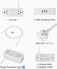 Surge Protector Power Strip Bar with Flat Plug 4 Outlet 3 USB for Desktop Office
