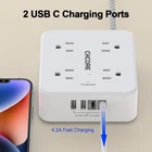Surge Protector Power Strip - CHCORE 5 Ft Braided Extension Cord with 8 White Product Details Brand: CHCORE Color: White Total Power Outlets: 8 Voltage: 125 Volts Special Feature: Surge Protection, Mountable, Usb Slot 【12 IN 1 Surge Protector Power Strip】- The 3-side design surge protector power strip with 8AC widely outlets and 4 USB charging ports(2 USB C Ports), 5 Feet extension cord(1250W/10A), can power up to 12 devices simultaneously. Wide range voltage design, can be used on 100v to 240v circuit. The compact design saves more space, suitable for the home, office, and college dorm room essentials. 【4 USB Fast & Smart Charge】- 4 USB ports total 5V/4.2 A, Each USB A port features 2.4A Max output. USB C charging port features 3A MAX. Built- with smart technology, detecting charging devices and deliver optimal charging speed automatically, compatible with most USB devices. NOTE: The UCB-C port doesn't support any other devices which need 14~22V charging voltage. 【5 Ft Braided extension cord with Flat Plug】- 5 Feet Right Angled Flat Plug power cord makes it more flexible, the two mounting holes on back allows this power strip to be securely installed in various applications. Environmental protection and fire-resistance PC shell with flame retardant at 1382℉ makes it more durable and longer lifetime. 【Multi Safety Protection】- RoHS, FCC and ETL Certificates. The 3 level complementary Surge Protector Circuit which composed of TVS (transient voltage suppressor), MOV (metal oxide varistor), GDT (gas discharge tube), The surge protector with overload protection protects your electrical appliances from lighting, surges or spikes. The minimum energy-absorbing capacity of 900 Joules. It will automatically cut power to protect connected devices when voltage surge is overwhelming. Specifications: Input Voltage: 125VAC; 60HZ; Max.Current: 10A; Max.Power Rating: 1250W; Surge Protector Rating: 900 Joules; USB Port Output: DC 5V, Total 4.2A; Cord Length: 5 Ft; Color: White; Item Dimensions: 4.04*4.29*1.65 in; Package list: 1 x Surge Protector Power Strip with usb Port. 1 x Instruction manual. 1 x Paper Box. Notice: Do not exceed the total rating or it may cause damage to the unit and fire hazards. NOTE: The UCB-C port doesn't support any other devices which need 14~22V charging voltage.