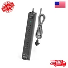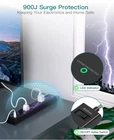 Surge Protector Power Strip - Extension Cord with 6 AC Outlets 4 USB (2 USB-C Ports), Flat Plug with Overload Surge Protection, Wall Mount, 5ft, Outlet Extender for Home Office Dorm Room Essentials 10-in-1 Extension Cord with Surge Protection and Multiple Outlets The sleek power strip features 6 AC surge-protected outlets (15A/1875W) and 4 USB ports (3.1A/15V), allowing you to power multiple devices simultaneously. It efficiently charges cell phones, laptops, tablets, and cameras without the need for multiple converters, helping to declutter and organize your space. This versatile power strip is perfect for home, office, and college dorm setups. 2 USB-C Fast Charging Ports with Smart Technology Equipped with two additional USB-C ports, this power strip offers fast charging at 5V/3A, while the USB-A ports provide up to 5V/2.4A. With built-in smart charging technology, it automatically detects and delivers the optimal charging speed for your devices, making it ideal for smartphones, tablets, Bluetooth earphones, and more. Ultra-Thin Flat Plug and 5-Foot Heavy-Duty Power Cord Designed with a 0.35-inch ultra-thin flat plug and a 45-degree right-angle design, this extension cord easily fits behind furniture or appliances, maximizing space. The 5-foot power cord provides flexibility, allowing you to reach distant outlets effortlessly, making it perfect for home, office, and dorm use. Easy Wall and Desk Mounting This mountable power strip features a unique screw fixation design on both ends (with 4 screws included), ensuring secure installation on walls, desks, or furniture. It remains stable on desktops or nightstands, preventing slips and falls, while its compact design keeps your workspace tidy. Comprehensive Safety Protection with On/Off Switch This power strip includes surge protection (900J), overload protection, short-circuit protection, and over-current protection, safeguarding your devices. The built-in on/off switch automatically shuts off power when the load exceeds the rated value, ensuring protection for expensive electronics like computers and TVs. ETL safety certified, with UL-certified components, for added peace of mind.