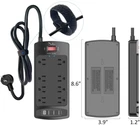 Store New Arrivals Add to Favorite View Feedback Contact Surge Protector Power Strip - Flat Plug Extension Cord with 8 Outlets and 4 USB Ports, 6 Feet Power Cord (1625W/13A), 2700 Joules, ETL Listed, Black Description Item model number HC29U56 Style 6 Feet Color Black Country of Origin China Item Weight 15.2 ounces Total Power Outlets 8 Voltage 220 Volts Special Feature Surge Protection, Usb Slot Package Dimensions 10.04 x 4.21 x 2.13 inches 【Power Strip with 8AC outlets & 4 USB】- power bars with surge protector with 8AC outlets & 4 USB charging ports (1 USB C Outlet), 6 Feet Heavy Duty extension cord(1625W/13A), surge protector (2700 Joules) with overload protection protects against spikes and fluctuations. Wide range voltage design, can be used on 120v to 240v circuit. 【USB- C Fast & Smart Charge】- 4 USB ports total 3.4 A, each USB A port features 2.4A Max output. USB C charging port features 3A MAX. Built- with smart technology, detecting charging devices and deliver optimal charging speed automatically, compatible with most USB devices. NOTE: The UCB-C port doesn't support any other devices which need 14~22V charging voltage. 【8AC Surge Protector Outlets】- The 3 level complementary Surge Protector Circuit which composed of TVS (transient voltage suppressor), MOV (metal oxide varistor), GDT (gas discharge tube), with minimum 2700 Joules energy absorbing capacity, could protect your devices much more quickly and reliably than other brand’s 1 level MOV Surge Protection Circuits. 【Safety and Certificate】- ETL safety certified, with extension cord and other major components certified by UL. The over current protection switch limits the power strip's working current to certain setting, so it will not get hot during usage. Environmental protection and fire-resistance PC shell with flame retardant at 1382℉ makes it more durable and longer lifetime. 【What You Get】- Nuetsa Power strip, Maunal, 30-day return, our worry-free 24-month, and reliable customer service will respond to you within 24 hours. Product Description Nuetsa Surge Protector Power Strip with 8 AC Outlets and 4 USB Ports Specification: Input Voltage: 100-240VAC; 60HZ Max.Current: 13A Max.Power Rating: 1625W USB Port Output: DC 5V, Total 3.4A Surge Protector Rating: 2700 Joules Nuetsa Surge Protector Power Strip with Heavy Duty 6ft Extension Long Cord 2700 Joules Surge Pretector Power Strip with 8 AC Outlets and 4 USB Charging Ports 2 Special design widely spacing AC outlets(1.8 inches) for large adapters and 6 standard spacing outlets, meet all your charging requirements for home, office, kitchen appliances like TV, speakers, DVD, computer, laptop, printer, lamp and more. 4 USB ports total 3.4 A, Each USB A port features 2.4A Max output. USB C charging port features 3A MAX. Built- with smart technology, detecting charging devices and deliver optimal charging speed automatically, compatible with most USB devices. 2 Special widely spacing AC outlets and 6 standard spacing outlets 3 USB A Charging Ports And 1 USB C Charging Port Item Dimensions: 8.6*3.9*1.2 inches Cord Length: 6 Feet 3 USB A Ports & 1 USB C Port 4 USB ports total 3.4 A, Each USB A port features 2.4A Max output. USB C charging port features 3A MAX. Built- with smart technology, detecting charging devices and deliver optimal charging speed automatically, compatible with most USB devices. NOTE: The UCB-C port doesn't support any other devices which need 14~22V charging voltage 2 Special design widely spacing AC outlets 2 Special design widely spacing AC outlets(1.8 inches) for large adapters and 6 standard spacing outlets, meet all your charging requirements for home, office, kitchen appliances like TV, speakers, DVD, computer, laptop, printer, modem, lamp, refrigerator and more. 45° plug design is more convenient to use The 45° plug design makes it possible not to interfere with your simultaneous use of other devices, which brings the best experience. Multi Safety Protection The 3 level complementary Surge Protector Circuit which composed of TVS (transient voltage suppressor), MOV (metal oxide varistor), GDT (gas discharge tube), with minimum 2700 Joules energy absorbing capacity, could protect your devices much more quickly and reliably than other brand’s 1 level MOV Surge Protection Circuits. 1382°F Flame-Retardant Materials Shell 1382 ° F flame retardant material housing can effectively prevent the occurrence of fire, to ensure the safety. Tips: For your safety, do not exceed the product's power rating of 1625W when using the device, otherwise it may cause damage to your device! 6 Feet Flat Plug Extension Cord 1625W/13A heavy duty design with 6ft extra long extension cord, 3x16AWG Phosphor Copper Wire. The thicker Copper Wires for stronger, high conductivity, more efficient power output, low heat & safer. A tough coated power cable withstands pressure for enhanced safety and longevity. The mounting hole design makes it useful in more setting Mounting Method 1. Measure the distance between the 2 keyhole slots with the same direction on the back of the power strip. 2. Punch 2 holes on the baseboard with the distance you just measured and insert two self-tapping screws. 3. Put the power strip into the screws and then pull it down a little bit. Please ensure that the screws slide into the smaller holes. Widely Range Of Applications This Surge Protector Power Strip with 8 outlets & 4 USB Ports is Widely Range Of Applications, such as living room/Bedroom/office/Kitchen etc. ABOUT US We offer the best prices around on high quality products. Our E-store includes media such as books, movies, music and games while offering electronics, toys, sporting apparel, clothing, tools, general home, garden items and more. SHIPPING We are always working hard to ensure your package arrives as soon as possible. Please understand that some factors like weather, high postal traffic, and the performance of shipping companies are outside of our control. We offe
