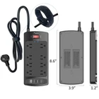 Specifications: Input Voltage: 100-240VAC; 60HZ Max.Current: 13A Max.Power Rating: 1625W USB Port Output: DC 5V, Total 3.4A Surge Protection Rating: 2700 Joules Cord Length: 6 Feet; Item Dimensions: 8.6*3.9*1.2 in; Package list: 1 x Surge Protector Power Strip with usb Port 1 x Instruction manual 1 x Paper Box 【Power Strip with 8AC outlets & 4 USB】- power bars with surge protector with 8AC outlets & 4 USB charging ports (1 USB C Outlet), 6 Feet Heavy Duty extension cord(1625W/13A), surge protector (2700 Joules) with overload protection protects against spikes and fluctuations. Wide range voltage design, can be used on 120v to 240v circuit. 【USB- C Fast & Smart Charge】- 4 USB ports total 3.4 A, each USB A port features 2.4A Max output. USB C charging port features 3A MAX. Built- with smart technology, detecting charging devices and deliver optimal charging speed automatically, compatible with most USB devices. NOTE: The UCB-C port doesn't support any other devices which need 14~22V charging voltage. 【8AC Surge Protector Outlets】- The 3 level complementary Surge Protector Circuit which composed of TVS (transient voltage suppressor), MOV (metal oxide varistor), GDT (gas discharge tube), with minimum 2700 Joules energy absorbing capacity, could protect your devices much more quickly and reliably than other brand’s 1 level MOV Surge Protection Circuits. 【Safety and Certificate】- ETL safety certified, with extension cord and other major components certified by UL. The over current protection switch limits the power strip's working current to certain setting, so it will not get hot during usage. Environmental protection and fire-resistance PC shell with flame retardant at 1382℉ makes it more durable and longer lifetime. 【What You Get】- Power strip, Maunal, 30-day return, our worry-free 24-month, and reliable customer service will respond to you within 24 hours.