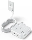 Product Description TESSAN Surge Protector Power Strip 15ft Cord 3-Sided & Wide-Spaced Design 11 in 1 Surge Protector Power Strip 3-sided design that makes it easier to make the plugs not covering any outlet, and the 8 AC outlets with 1.9 inches long space in between. Larger spacing makes it easier to use for all kinds of equipment. The compact design saves more space, suitable for the home, office, college dorm room and travel Long Enough to Reach Wall Outlet Sockets Extension Cord 15 Ft 15ft long cord could provide power from a distance, create a power hub for your electronics at your home, office, workshop or garage. Re-use Hidden Sockets in Your Home Ultra Thin Flat Plug Power Strip 0.35inch Low-Profile Flat Head TESSAN power strip flat plug could be easily hide in the back the furniture、bed and refrigerator, which can maximum save your outlet space occupied 0.12inch Ultra Thin Flat Extension Cord The flat cable is thinner than the standard round cable. It could run snugly under the carpet and doesn't hurt when you step on. Note: The UCB C port is not Quick Charger 3.0, doesn't support any other devices which need 9~22V charging voltage Wall Mountable Design Additional 2 keyholes on back can allow you install this flat wall extension cord on wall, workshop etc. Save your spaces 900 Joules Surge Protection Lightning protection and surge protection with a 900 joule large energy rating, protect your expensive appliances like computers, TV at home Overload Protection Switch Our power strip includes an integrated circuit breaker to protect against overload. It automatic power-off if the connected equipments are overloaded 4x Anti-Slip Rubber Feet There are 4 anti-slip rubber feet at the bottom of the power strip, which makes it stably to stand on the desktop