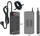 Surge Protector Power Strip - Nuetsa Flat Plug Extension Cord with 8 Outlets and 4 USB Ports, 6 Feet Power Cord (1625W/13A), 2700 Joules, ETL Listed, Black. Product Description. 【Power Strip with 8AC outlets & 4 USB】- power bars with surge protector with 8AC outlets & 4 USB charging ports (1 USB C Outlet), 6 Feet Heavy Duty extension cord(1625W/13A), surge protector (2700 Joules) with overload protection protects against spikes and fluctuations. Wide range voltage design, can be used on 120v to 240v circuit. 【USB- C Fast & Smart Charge】- 4 USB ports total 3.4 A, each USB A port features 2.4A Max output. USB C charging port features 3A MAX. Built- with smart technology, detecting charging devices and deliver optimal charging speed automatically, compatible with most USB devices. NOTE: The UCB-C port doesn't support any other devices which need 14~22V charging voltage. 【8AC Surge Protector Outlets】- The 3 level complementary Surge Protector Circuit which composed of TVS (transient voltage suppressor), MOV (metal oxide varistor), GDT (gas discharge tube), with minimum 2700 Joules energy absorbing capacity, could protect your devices much more quickly and reliably than other brand’s 1 level MOV Surge Protection Circuits. 【Safety and Certificate】- ETL safety certified, with extension cord and other major components certified by UL. The over current protection switch limits the power strip's working current to certain setting, so it will not get hot during usage. Environmental protection and fire-resistance PC shell with flame retardant at 1382℉ makes it more durable and longer lifetime. Shipping Policy. We are always working hard to ensure your package arrives as soon as possible. Please understand that some factors like weather, high postal traffic, and the performance of shipping companies are outside of our control. We offer free shipping to the lower 48 states and ship within 2 business days of payment, usually sooner. We do not accept P.O. Boxes. Please provide a physical address. Return Policy. We offer a 30-Day Return Policy on items which you are not completely satisfied with. Buyer is responsible for return shipping on any item with no damage. Customer Satisfaction. We try our very best to make sure every customer is completely satisfied. If there's a problem, message us! We're happy to help. Feed Back. Feedback is extremely important to us and eBay. If you are satisfied with our product and service, please take a moment to leave Positive Feedback. Your satisfaction is our first Priority. If there is any issue. Please contact us Before leaving a neutral or negative rating so that we may resolve any concern.