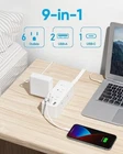 【0.27in Ultra Thin Flat Plug】 The ultra-thin plug can perfectly fit your wall outlet and be hidden behind furniture to save more space than the usual plug. 【9-in-1 USB-C Power Strip】 All-in-one power strip provides 6 widely spaced outlets, 2 USB-A ports, and 1 USB-C port, charging 9 devices simultaneously. 【Compact for Travel】 The 3-Side design makes our power strip only 1/3 the size and mass of others. It's compact and lightweight as a travel essential. 【Overload Protection】 The built-in circuit breaker cuts the power off when it exceeds the rated power to prevent overcurrent and overheating. 【Wall Mount Power Strip】 There are two mounting holes on the back of the power strip, which can be used to easily install the power strip on the wall.