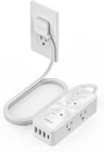 Surge Protector Power Strip, TESSAN Ultra Thin Flat Plug 5 ft with 6 AC White Product Details Package Dimensions: 6.73 x 5.59 x 1.73 inches Item Weight: 11.3 ounces Item model number: TS-1027-C Manufacturer: Zhuhai Tessan Power Technology Co., Ltd. Brand: TESSAN Color: White Total Power Outlets: 6 Voltage: 125 Special Feature: Surge Protection Flat Extension Cord 5 FT: With only 0.31 in ultra thin flat head design, extension cord flat wall plug can easily fit in tight spots and hide behind sofa, bed, nightstand or other furniture, sitting flush against the wall; 45 degree right angle design create an extra space for other plug below without blocking Power Strip with USB C: 1 USB C port features 3A, 3 USB A ports features 2.4A; 2 types of USB ports can detect charged devices and deliver optimal charging speed, giving you more charging options; USB power strip is ideal for cell phone, tablet, earphone, etc. NOTE: The USB C port is not Quick Charger 3.0, doesn't support any other devices which need 9~22V charging voltage Power Strip Surge Protector Outlet: Equipped with overload protection, short-circuit protection, over-current protection; Reliable on/ off switch can automatically shut off and protect your expensive electronics, providing you with a safe and reliable charging environment 6 Wide Space Outlets: This extension cord with multiple outlets could turn 1 socket into 6 AC outlets, 3 sided-design could charge 6 big plugs simultaneously without blocking, keep your desktop organized; You can use it in any indoor place such as home, office and dorm room Mountable Power Strip: 2 mounting holes design allow this flat plug power strip 5ft securely installed in various applications, such as workbenches, wall mounts, floor mounts, under counters and more; 4 rubber feet at the bottom efficiently keeps it from slipping and sliding
