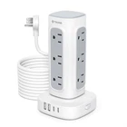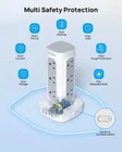 Surge Protector Power Strip Tower with USB C: - 12 AC Outlet - 4 USB(1 USB C) Smart Charging Maximize the Charge Speed - compact and space-saving - widely spaced - 4 anti-slip mat - fireproof protection - 10ft and cable tie -1700J surge protector power strip tower Specifications: Max Power: 1625W Voltage Compatibility: AC 100-250V Rated Current: 13A USB Charger Power Rating: 5V-0~2.4A USB C Charger Power Rating: 5V-0~3A USB Charger Output: MAX 17W/ 3.4A Package list: 1 x Surge Protector Power Strip Tower with USB C Port 1 x Instruction manual 1 x Paper Box 1 x A square double-sided tape 【Space-Saving Tower Design】power strip tower features a unique vertical tower design, and 12 widely spaced AC outlets (1.5 in pitch) split equally among three sides, the bulky plug won't block adjacent outlets and are more space-saving than other large power strips, it keeps your desktop organized. As a gift, we include a cable retention strap to save you money on cable management 【16 in 1 Power Strip Tower】Our power strip surge protector features 12 AC outlets, 2 USB-C ports, and 2 USB-A ports, allowing you to power up to 18 devices simultaneously. Say goodbye to limited outlets, and upgrade to our versatile tower power strip for a stress-free power solution. Perfect powering for laptops, phones, tablets, gaming devices Max. power: 1625W (125V~13A) 【Flat Plug Power Strip】This ultra flat plug power strip with a flat slim plug (0.55” thick), that can close to the wall easily, and hide in the back of furniture, bed, sofa, or refrigerator. 45° right angle flat plug design will not block the bottom receptacle of your duplex wall outlet, eliminates awkward cords from cluttering, and keeps indoor décor tidy 【Power Strip with USB C】The usb power strip with 2 USB-C ports (max 3A/15W), and 2 USB-A ports (max 2.4A/12W), USB total output 3.4A/17W. Built-in smart IC charging technology that can detect and automatically adjust the charging rate of each charger device. Meeting your various charging demands for bedroom, bathroom, kitchen, and office desk. Quick Charge Not Supported 【Super Safety Charging Tower】The surge protector tower is built with 1700J surge protection, protecting your devices from power surges caused by lightning strikes. With a 1380℉ flame-retardant casing, circuit breaker switch, and multiple safety features against overload, short-circuit, over-current, over-voltage, and overheating, keep your home and connected devices safe.