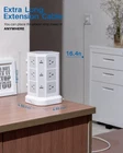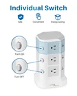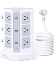 18 IN 1 Power Strip- Integrating 12 Outlets and 6 USBs together : tower power strip, the answer to all your charging needs, is a versatile, sophisticated, and intelligent charging dock. It integrates 12 AC outlets and 6 USB charging ports within one charging station, allowing you to connect and charge up to 18 devices simultaneously, even where space is limited. It is an ideal all-in-one solution. 16.4FT Long Extension Cord : The surge protected extension lead has a long extension cord of 16.4 ft, which is long enough to meet most usage scenarios and can accommodate your instant charging needs. With 100% pure copper wire, this power strip provides steady and safe electricity to the appliances. SUPERIOR SECURITY : The 1500 J built-in surge protector protects all the attached devices effectively and keeps them safe from voltage spikes, even during thunderstorms. The overload protection button switches off automatically when the total power of the device exceeds 1875W and thus, completely protects you and your electronic devices and appliances. INDIVIDUAL SWITCH DESIGN : The power strip accompanied by USBs and outlets has an individual power control switch on each level, 3 in total, making it easy to turn off multiple electronics at once when not in use. The cable core made of pure copper is sturdy, durable, and safe to use. The 2-Meter long cord can meet most usage scenarios and can accommodate your instant charging needs. REAL SPACE SAVER : Equipped with an assortment of 12 AC sockets and 6 USB ports, this innovative power strip has sockets perpendicularly positioned to the floor, maximizing space compared to the conventional models. The ergonomic spacing and orientation of the sockets will allow better organization of the space as the whole system can be tucked away neatly into tight spaces and corners.