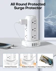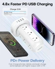 Surge Protector Power Strip Tower PD 20W 12AC 4 USB Ports 1 USB C 6.5FT 13A 【16 in 1 Power Strip Surge Protector】: Flat plug extension cord could turn 1 sockets into 12 outlets 4 USB, which could charge up to 16 devices at the same time. Mini power strip tower must-have accessories for the college dorm room, home, office supplies and etc. And save your space and make your desktop organized. 【PD 20W USB- C Charge Up to 48% Faster 】Upgraded surge protector added USB-C ports can up to PD 20W to meet faster 48% charging demand.,is specially designed for iPhone 12/13/14 Pro Max a full-speed charge. 4 power strip with USB port charge together can up to 15W/5V/3A max. Built-in with smart technology, detecting charging devices and deliver optimal charging speed automatically. 【Right Angle Ultra Flat Plug & 6.5FT Extension Cord】With only 0.48 inch ultra thin plug and 45° right angle design, the flat plug power strip is much thinner than traditional plugs, which can close to the wall easily, and hide in the back of furniture, bed or refrigerator; 6.5ft extension cord with multiple outlets is made of pure copper, which has better current carrying capacity (13A). The braided power cord is not easy to deform, is durable, and more safety. 【Travel Power Strip Must Haves / Suitable for Any Occasions】- The compact size mini surge protector tower it's a must have Travel accessories. The surge protector power strip is small size and lightweight, easy to carry and best for travel essentials. Power strip flat plug with 4 anti-slip rubbers bottom, the 6.5 Ft low profile extension cord can be stable on your desktop or nightstand without slipping off. 【Multiple Safety Protection & After Service】 - Power strip has RoHS, ETL Certificates. This power strip has overload protection, short-circuit protection, over current protection, over-voltage protection and overheating protection. Environmental protection and fire-resistance PC shell with flame retardant at 1382℉ makes flat plug surge protector more durable and longer lifetime.(juapyes provides 12-month free worry. 24h customer service.) ------------------------------------------------------------------------------------------ Shipping Policy: Domestic lower 48 states shipping is free and expedited. Shipping is also free to the rest US states and US Protectorates including Puerto Rico, Alaska, Hawaii, APO/FPO, but delivery times are longer than usual. If you need your order by a specific date please contact us before you make the purchase for a delivery estimate. ------------------------------------------------------------------------------------------ Return Policy: Your satisfaction is guaranteed! If for any reason you are unhappy with your item, just return it within 30 days for a full refund. Please contact us prior to initiating a return so that we can issue you a refund authorization.