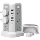 Surge Protector Power Strip Tower with 18W Fast Charging Port, 10FT Extension Cord with 12 AC Multiple Outlets, and 5 USB Ports(4 USB-A and 1 USB-C). Technical data Rated Voltage: 100-240 V/ 50/ 60 Hz Rated Current: 10A USB-A Output: 5V/2.4A MAX USB-C Output: 18W Max, 5V/3A, 9V/2A, 12V/1.5A Extension Cord Length: 10ft/3m Surge Protection: Yes Overload protection: Yes Shell Material: ABS & Fireproof Material Power strip Tower size: 4.84*4.84*7.08 inch Package Size: 6.10*4.92*7.48 inch Package: a manual, and a surge protector power strip tower 18W Fast Charging Port Power Strip Surge Protector This USB-C port with a maximum output of 18W. The USB C port of the surge protector power strip charges up to 30% faster. Energy Saver ON/OFF Switch Design The surge protector power strip has 4-separated switches that control 4 parts, making it easy to turn off multiple electronics at once when not in use, easier for you to manage all connected devices, and no more plugging & unplugging hassle! Suitable for various occasions such as home, office, desk, kitchen, etc. The switch on the right side of the USB ports controls the USB power supply. Note: "-" means ON, "O" means OFF. Easily add up to 12+5 devices with the surge protector tower, which can recognize your device and give optimal charging speed. Surge Protector Power Strip with PD18W USB C: This USB-C port with a maximum output of 18W. The USB C port of the surge protector power strip charges up to 30% faster, which will save you more time. Because this Surge Protector Power Strip Tower has opted for a more life-adapted fast-charging port. This is an excellent charging tower. 17 IN 1 Tower Surge Protector Power Strip: This vertical surge protector power strip tower with 12 AC outlets(1.7 inches pitch) and 5 USB (1 USB C) charging ports (USB A: max 2.4A/port, USB C: 18W Max), which can power multiple devices. Such as PC, computers, laptops, phones, tablets, TV, printers, speakers, smartphone, smartwatch, and other office supplies. 10FT Extension Cord with Multiple Outlets: The surge protector power strip tower has a 10FT upgraded extension cord, which is UL approved and made of pure copper. The extension cord is very thick and has a better current carrying capacity (10A). it allows devices on multiple outlets to work simultaneously. Fire-resistance PC shell with flame retardant at 1382℉ makes it more durable and longer lifetime. Surge Protection 1800 Joules & Overload Protection: This power strip surge protector with overload protection protects against spikes and fluctuations. This power strip tower has overload protection, short-circuit protection, over current protection, over-voltage protection, over-temperature protection, surge production, and lightning protection. It will automatically cut power to protect connected devices when the voltage surge is overwhelming. Safe & Reliable Power Tower Surge Protector: To protect you and your valuable electronic devices, this power strip tower has advanced protection technology and FCC, and CE safety certification. In addition, we will provide you with the best service. If you have any questions, please leave us a message. We will get back to you via Amazon within 24 hours.