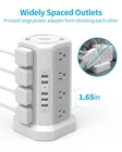 Surge Protector Power Strip Tower with USB Ports, Fararaka 10 FT Extension Cord with 16 Multiple Outlets and 5 USB Ports, Flat Plug Charging Station for Home, Office, Dorm Room 16 Outlets 10FT Power Strip Tower White MORE BENEFITS 【21 in 1 Power Strip Tower】:With 16 AC outlets and 5 USB ports, this 10ft power strip can power up to 21 devices simultaneously, making it your best choice for powering multiple devices simultaneously when they are away from outlets. 【Surge Protector Power Strip with 5 USB Ports】: Provide 5 usb ports, each port can deliver maximum 5V/2.4A output individually, and 5 usb ports together can deliver maximum 5V/5A output. 【Tower Space Saving Design】: With a tower design, this multi outlet tower can save space on the ground by making use of vertical space, making it a great charging station. 【Flat Plug Extension Cord with Multiple Outlets】:The flat plug design on this surge protector with usb ports allows the plug to fit into tight spaces like hard-to-reach outlets hidden behind furniture easily, it also has a right angle so that it won’t block another outlet in a duplex. 【Surge Protector with Multiple Safety Protection】: This surge protector power strip has multiple safety protection including 1800J surge protection, 1625W overload protection, 1382℉overheat protection and short-circuit protection. Protect your expensive devices from accidents like lightning and overload.