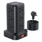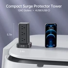 【10FT Extension Cord with Multiple Outlets 】The 10FT upgraded extension cord with multiple outlets is made of pure copper. Reinforced design at the junction of the stand of power strip tower and the wire head. To protect the terminal from wear and tear. Environmental protection and fire-resistance PC shell with flame retardant at 1382℉ makes it more safe and longer lifetime. 【USB- C Fast & Smart Charge】- 4 USB ports total 3.4A, each USB A port features 2.4A Max output. USB C charging port features 3A Max. Built-in with smart technology, detecting charging devices and deliver optimal charging speed automatically, compatible with most USB devices. 【Space-Saving and Travel-Ready】Ideal to bring during business trips and vacations to keep all your essential devices charged. No need to take additional USB phone charger while traveling. The extension outlet also can be used in any indoor place with socket, Perfect solution for dorm room, bedside, behind the sofa,kitchen,office etc. 【16 IN 1 Surge Protector Tower with USB】- This power strip tower surge protector with 12 AC outlets and 4 smart USB can power up to 16 electronic devices simultaneously. Integrated circuit breaker and 1200 Joules protection rating ensure the safety of your electronics. 【All-Round Protected Surge Protector】 This power strip outlet is 8- SECURITY OVERLOAD PROTECTION. This surge protector is made of fireproof ABS plastic material and PVC. The power strip surge protector will automatically cut power to protect connected devices when a voltage surge is detected.