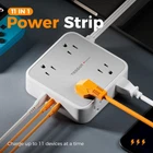 Space Saving Flat Plug Ultra-Thin Flat Plug Power Strip Still have problems about wasted space with the traditional plugs? The 0.31 inch ultra slim flat plug is thinner than the standard plug to fit in narrow spots and hide behind furniture like sofa, bed, sitting flush and nightstand, against the wall No worry power spikes damage Surge Protector Power Strip This extension cord surge protector can protect your expensive computers, tv, and all other electronices from power surge attacks that might be caused by the unstable power supply, lighting and storm Note: The USB C port is not Quick Charger 3.0, doesn't support any other devices which need 9-22V charging voltage Overload Protection Switch Our power strip includes an integrated circuit breaker to protect against overload. It automatic power-off if the connected equipments are overloaded Wall Mountable Design Additional 2 keyholes on back can allow you install this flat wall extension cord on wall, workshop etc. Save your spaces 4x Anti-Slip Rubber Feet There are 4 anti-slip rubber feet at the bottom of the power strip, which makes it stably to stand on the desktop 5FT Ultra Thin Extension Cord 5ft Ultra-thin flat cord can fit easily in tight spaces like desk, nightstand; The 45 degrees right angle makes it doesn't block other outlets below