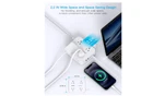 More product information 12 IN 1 Power Strip with USB- The 3-side power strip surge protector with 8AC widely outlets and 4 USB charging ports(Total 5V/3.1A) can power up to 12 devices simultaneously. It could charge your cellphone, laptop, tablet, cameras without a variety of converters, save your space and make your desktop organize, perfect suitable for your desktop or nightstand home, office, travel, college dorm room 25 Ft Long Extension Cord with Flat Plug- The low profile flat plug fits easily in tight spaces; and the right angle flat plug design prevents bottom plug blocking; the 25Ft white braided extension cord is made of pure copper, which has better current carrying capacity (15A). The braided power cord is not easy to deform, durable and more safety; the two mounting holes on back allows this power strip to be securely installed in various applications. 2 x USB C Power Strip- Added extra 2 USB C ports for your devices, the USB C port can charge up to 5V/3A. USB-A ports can charge up to 5V/2.4A Max, all USB Ports Output is 5V/3.1A, 15.5W max which is 30% faster than other usb c charging station. With smart charging technology, it can auto-detects your devices and can reach faster charging efficiency, perfectly fit for your iphone, ipad, tablet etc 2.2 IN Wide Space- The desk power strip with 3-side design that makes it easier to make the plugs not covering any outlet, the 8 AC outlets with 2.2 INCH widely spaced in between outlets, larger than standard socket, fit big adapters without blocking each other. The compact design saves more space, suitable for the home, office, and college dorm room Overload Surge Protection- The power surge protector with overload protection protects your electrical appliances from lighting, surges or spikes. The minimum energy-absorbing capacity of 900 Joules. Lighted on/off switch with integrated circuit breaker for overload protection of all outlets.(The "Surge Protected” indicator light on to show your devices are protected) Free Shipping Return window is 30 day after receiving the item