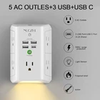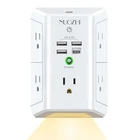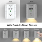 Specifications: Input Voltage: 100-240VAC; 60HZ; Max.Current: 15A; Max.Power Rating: 1875W; USB Port Output: DC 5V, Total 4.2A; Surge Protection Rating: 1680 Joules; Item Dimensions: 5.5*3.8*1.7 in; Package list: 1 x Multi Outlet Extender Surge Protector with usb ports. 1 x Instruction manual. 1 x Paper Box. Notice: Do not exceed the total rating or it may cause damage to the unit and fire hazards. This plug extender can not compatible GFIC outlet/2 prong outlet. 【9 IN 1 Function USB Wall Outlet】- Fit duplex outlet perfectly, just plug in to use. You get 5 AC outlet splitter (3 sides) with wide space in between; 4 USB charger ports; and LED night light on the bottom. 1680 joules surge protector protect electronics by improving your power quality.NOTE: The UCB-C port is not Quick Charger 3.0, doesn't support any other devices which need 9~22V charging voltage. 【Wide space】- 5 AC outlets built-in 1680 Joules surge protector with 2.1 inches long space in between, larger than standard 1.5-inch socket. Larger spacing makes it easier to use for all kinds of equipment. 4 Smart USB ports (Total 4.2A) can charge your smart device quickly. 【Smart Night Light】- With Dusk-To-Dawn Sensor, automatically turns on only when ambient lighting becomes insufficient. With touch sensor, three levels of adjustable brightness let you choose the right amount of light for your own needs. You could also choose to turn on/off the nightlight manually. 【1680J Surge Protector Outlet】- 3 complementary Surge Protection Circuits, TVS(transient voltage suppressor) MOV(metal oxide varistor) GDT(gas discharge tube), with response speed less than 1Ns, and minimum energy-absorbing capacity of 1800 Joules, much more quickly and reliably than the traditional MOV surge protector circuit. ("SURGE PROTECTED" indicator light on to show your devices are protected). 【Our After Sale Service】- ETL Certified, Our friendly and reliable customer service will respond to you within 24 hours. You can purchase with confidence, with our 30-day return and 12-month warranty.