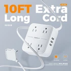Product Description Space Saving Flat Plug 10FT Ultra-Thin Flat Plug Power Strip Still have problems about wasted space with the traditional plugs? The 0.12inch Slim flat cable is thinner than the standard round power bar to run under the carpet and doesn't hurt when you step on that spot; It can also keep unsightly cords hidden and allows furniture placement without having to accommodate 10ft extra long cord makes it more flexible for various appliances Plug out from wall outlet easily Ring Pull Flat Plug Extension Cord 0.31inch Low-Profile Flat Head TESSAN power strip flat plug can easily fit behind any furniture which is close to the wall, it allowed to push your couch right up against the wall and still able to use the outlet behind the couch. Adding with ring pull design As this 45 degree flat plug have ultra thin size which can be difficult to unplug, with unique pull ring design, this 3 prong extension cord can be easily inserted or pulled out, brings you a better using experience. No worry power spikes damage Surge Protector Power Strip This surge protector extension cord can safeguards your expensive computers, tv, and all other electronices from power surge attacks that might be caused by the unstable power supply, lighting and storm Reliable overload switch will trip off automatically to protect your devices and home when power overloaded Widely Spaced Power Strip Widely spaced outlets fit for a slightly big power adapters without blocking adjacent outlets; Saving your space and making your desktop organized Reliable Overload Switch Built-in overload protection switch; When the power overload, the integrated circuit breaker will trip off automatically to protect your devices Extra-long 10-foot cord More flexibility for most locations in your home! Please choose your own as needed; Right angle flat head and thin cord fit well behind furniture Stable Mounting on Walls 4 rubber feet on the bottom prevent slipping, and 2 mountable holes allow for stable wall mounting