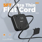 3 AC Outlets 2 USB A 1 USB C Port 6 IN 1 Multi Plug Outlet 3 widely space AC outlets could charge 4 big plugs at a time, AC outlets are separated without blocking each other; Power rate is 1250W, suitable for appliances laptops, hairdryers, shavers and more 3 USB Ports multi-functional design create possibility for your multi charging demands; Outlet splitter can be used in any indoor place with socket, especially for the bedroom, bathroom, hotel, college dorm room essentials Play Video Space Saving Flat Plug Ultra-Thin Flat Plug Power Strip Still have problems about wasted space with the traditional plugs? The 0.12 inch Ultra Slim flat plug cable is thinner than the standard round power bar to run under the carpet and doesn't hurt when you step on that spot; It can also keep unsightly cords hidden and allows furniture placement without having to accommodate No worry power spikes damage Surge Protector Power Strip This surge protector extension cord can safeguards your expensive computers, tv, and all other electronices from power surge attacks that might be caused by the unstable power supply, lighting and storm Reliable overload switch will trip off automatically to protect your devices and home when power overloaded Widely Spaced Power Strip Widely spaced outlets fit for a slightly big power adapters without blocking adjacent outlets; Saving your space and making your desktop organized Giving More Charging Options Dual USB A ports features 2.4A, the USB C port features 3A, idea for USB devices like smart phone, tablet, earphone, etc Stable Mounting on Desktops 4 rubber feet on the bottom prevent slipping, allow for stable wall mounting Thin Enough to Fit Behind Desk 5ft Ultra-thin flat cord design can fit easily in tight spaces, such as desk, nightstand; 45° right angle makes it not block the other outlet below