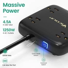 Surge Protector Power Strip with 4 USB Ports 4 Outlet Plugs Flat Plug Mountable Specification: 8 IN 1 Surge Protector Power Strip with USB. Power strip flat plug with 4 AC outlets(1250W) and 4 smart USB ports can charge 8 electrical devices or electronics simultaneously, each USB port can intelligently charge up to 5V/4.5A (total 5V/4.5A). With smart charging technology, the power strip can auto-detects your connected devices and can reach faster charging efficiency. This extension cord with usb ports is compatible with 100~240V worldwide voltage. 4 Widely Spaced Outlets. USB wall outlets are separated enough to fit big plugs without blocking each other; Whether as a desktop power strip or a nightstand USB charging station, it can be competent; It's a good accessory for your home, office, travel,dorm room essentials and college essentials. Right Angle Flat Plug & Wall Mountable. The optimized 3 prong extension cord features a low profile fits easily in tight spaces and keeps your other wall outlets unblocked. With 2 mounting holes and long extension cord, you could install this mountable power strip in various applications, such as wall mounts, floor mounts, workbench, under desk and more. Four anti-slip mats on the back, prevent the surge protector from sliding. All-Round Safety & Reset Function. The outlet extender built-in multiple security module safeguards your expensive electronic devices from overload, short circuit and voltage fluctuations, the reliable overload switch will trip off automatically to protect your devices and your home when the power overload, and you could also reset the surge protector power strip by yourself after unplug all the devices. Compact Stable Desktop Power Strip with USB. Measured only 3.93” x 3.93” x 1.0”, this small power strip can add 4 outlets and 4 usb ports for your desktop, bedroom, dorm room, guest room, kitchen, bathroom, etc. Comes with a cable tie for cable organization. 24h customer service: Not happy with your product, please feel free to contact us. Product Description Power Strip Surge Protector with USB Turns one wall outlet into 4 widely spaced grounded AC outlets with surge protection and 4 smart USB charger ports, eliminates the need for multiple chargers, saving money and desktop space for you. Each single USB port can intelligently identify your device and seeks to maximize its charging speed, each up to 4.5A – no need to decide between different ports. Minimalist Design: Besides the 4 AC outlets on the top surface, built-in 4 USB ports by the side, easy to reach and won’t block other outlets' upside. Easily to charge 7 devices simultaneously, such as your computer, printer, desk lamp, copier, phone, tablet, etc. USB High-Speed Charging 4 USB charger provides a total of 4.5 amps of power. Built-in device detection to ensure the high-speed possible charging for the specific plugged-in device, fits for most devices. Angled Flat Wall Plug An optimized flat plug with low profile and 45° angled design will fit easily tight space behind furniture and keep the bottom receptacle of duplex wall outlet unblocked. Overload Protection Built-in circuit breaker safeguards your all connected devices against excessive current and voltage fluctuations. The overload switch will trip off automatically during current overloads. Easy Reset If Power Strip’s overload protection is triggered, you’ll need to reset the device. To do that, just take a small tool like a SIM card ejector and press the reset button. Widely Spaced AC Outlets Larger space between AC outlets (1.96in/50mm) can accommodate larger power adapters without blocking adjacent outlets. Attach Anywhere Designed with a slimmer plug than other power strips, perfect for hard-to-reach outlets tucked away behind your bed or sofa.