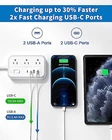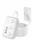 Power Strip Surge Protection - 6 Outlets and 4 USB Ports(2 USB C), 5 Ft Flat Extension Cord with Ultra Thin Flat Plug, Wall Mount, Overload Protection, Compact for Home, Office, Dorm Room Essentials 【10-in-1 Surge Protector Power Strip with USB Ports】- The 2-side white extension cord features 6AC widely spaced outlets (1250W/125V/10A), and 2 USB-A 2 USB-C ports (5V/3.1A/15W in total), could charge 10 devices simultaneously. It would charge your cellphone, laptop, tablet, cameras, etc, suitable for the home, office, and dorm room. Meet all your charging needs. 【6X Space Saving Upgrade Flat Plug】- with only 0.35 inch ultra slim design, the wall flat plug is 6X thinner than traditional plugs, which can close to the wall easily, and fits tight spaces behind the sofa, nightstand, bookshelf, and headboard. Save a lot of space, 【5Ft Flat Extension Cord & Wall Mountable Design】- The 5 ft flat power cord makes it tangle-free and more flexible while adding a power touch to any room space. This mount power strip can be fixed on the wall or desk by 2 keyhole slots on the back. (2 screws and 1 mounting template are provided for free) 【Surge Protection & Overload Protection】- The surge protector with overload protection protects your electrical appliances from lighting, surges, or spikes. The minimum energy-absorbing capacity of 1080 Joules. This indoor extension cord with built-in multiple security modules safeguards your electronic devices from overload and over-current/over-charge/short circuit/over-heated. 【USB C Fast Charging Station】- Added extra 2 USB C ports for devices fans, the USB C port can charge up to 5V/3A. 2 USB-A ports can charge up to 5V/2.4A Max. It will be your charging station for multiple devices; Note: All the USB ports output: 5V/3A, 15W max.