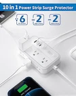 Power Strip Surge Protection - 6 Outlets and 4 USB Ports(2 USB C), 5 Ft Flat Extension Cord with Ultra Thin Flat Plug, Wall Mount, Overload Protection, Compact for Home, Office, Dorm Room Essentials 【10-in-1 Surge Protector Power Strip with USB Ports】- The 2-side white extension cord features 6AC widely spaced outlets (1250W/125V/10A), and 2 USB-A 2 USB-C ports (5V/3.1A/15W in total), could charge 10 devices simultaneously. It would charge your cellphone, laptop, tablet, cameras, etc, suitable for the home, office, and dorm room. Meet all your charging needs. 【6X Space Saving Upgrade Flat Plug】- with only 0.35 inch ultra slim design, the wall flat plug is 6X thinner than traditional plugs, which can close to the wall easily, and fits tight spaces behind the sofa, nightstand, bookshelf, and headboard. Save a lot of space, 【5Ft Flat Extension Cord & Wall Mountable Design】- The 5 ft flat power cord makes it tangle-free and more flexible while adding a power touch to any room space. This mount power strip can be fixed on the wall or desk by 2 keyhole slots on the back. (2 screws and 1 mounting template are provided for free) 【Surge Protection & Overload Protection】- The surge protector with overload protection protects your electrical appliances from lighting, surges, or spikes. The minimum energy-absorbing capacity of 1080 Joules. This indoor extension cord with built-in multiple security modules safeguards your electronic devices from overload and over-current/over-charge/short circuit/over-heated. 【USB C Fast Charging Station】- Added extra 2 USB C ports for devices fans, the USB C port can charge up to 5V/3A. 2 USB-A ports can charge up to 5V/2.4A Max. It will be your charging station for multiple devices; Note: All the USB ports output: 5V/3A, 15W max.
