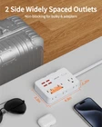 【10-in-1 Desktop Power Strip】- Easily power up to 10 devices simultaneously, the front design includes 3 grounding plugs, 4 USB-A ports (total output 17W/3.4A), and the side design with 3 two-pronged plugs, widely compatible with home electronic devices, office equipment etc. [All-Round Safety Protection]: This charging station has 8-fold safety protection -1050J surge protection, overload protection, over-current protection, short-circuit protection, over-voltage protection, overheat protection, grounded protection and flame-retardant. A reliable surge protector that protects your equipment safely during thunderstorms. 【Mount It Anywhere】: Designed with 2 mounting holes, this slim power bar can be mounted to the wall anywhere you choose. It’s perfectly convenient, exactly where you want it, and absolutely out of the way. 【Power for Your safety】: With 13A overload protection switch, even if you forget to unplug it when you go out, don't worry, it will automatically disconnect when it exceeds 1625W to protect the equipment safety. Make you feel more at ease when you go out! [Ultra Thin Flat Plug & 3Ft Extension Cord]: With only a 0.33-inch ultra-thin plug, which is much slimmer than traditional plugs, so it's easier to access any wall socket and hide in the back of the sofa. And a 45° right-angle design will not block the bottom receptacle of your duplex wall outlet. The 3-foot flat cable is 50% thinner than the traditional power cords to run it under a rug or along walls.