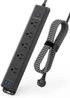 Power Outlet with 3 USB Chargers: Power strip with 5 AC outlets(1250W/10A), 2 USB-A ports(Total 5V/3.1A, Single 5V/2.4A) + 1 USB-C port, it will satisfy all your charging needs at home and the office. With a 5 ft. braided extension cord, the compact design is very perfect for travel and dorm essentials. USB-C Fast Charging: With smart charging technology, it delivers an optimized charge to USB devices according to your device's needs. Connecting to the USB-C port, it delivers optimal charging currents to your devices according to their need, perfect for simultaneously charging cellphones, laptops, , and cameras without a variety of converters. Braided Power Cord & Flat Plug: Equipped with a right-angle flat plug for fitting in tight spaces, perfect for your nightstand. The braided power cord is not easy to deform, is durable, and safer than other power cords. The three-prong power strip flat plug takes up little space, so you can keep your desktop organized. Surge Protector with Overload Protection: Built-in 1050 Joules surge suppression protection to protect your electrical appliances from lighting, surges, or spikes. The switch with overload protection( built-in circuit breaker) will shut off the power automatically to safeguard your expensive devices. What You Get: is a professional manufacturer providing various original power strips with years of experience. Please buy with confidence and rest assured knowing we're always standing behind our products.