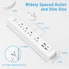 Surge Protector Power Strip: This power strip surge protector turns one wall outlet into four with 1440 joules surge protection, protecting your home/office equipment such as tv, computer, printers, copiers, and routers from voltage fluctuations, surges, and spikes. Power Strip with USB: This usb power strip has 3 USB A & 1 USB C charging port, eliminating the need for multiple chargers for your phone, laptop, fire tablet & reader. Great for office, desktop, home, bedside, college dorm room, kitchen, etc. Deliver the faster charge speed up to USB A ports (5V/2.4A) and USB C port (5V/3A) max for each port, (3.4A/17W in total). Ultra Flat Plug & Wall Mountable: The low-profile right angled flat plug design is great for stashing under or behind furniture. Four screw-mounting tabs allow this wall mount flat plug power strip to be securely installed on workbenches, behind the tv, garage, bedside, under counters/desks/cabinets, and dressers. Widely Spaced AC Outlets: We specially designed one ac outlet with super ample space(49mm/1.93") for plugging large power adapters without blocking other outlets, whether as an indoor desktop power strip or a nightstand charging station, it’s easy to plug your pc, monitor, printer, fan, air purifier, etc. 15ft Long Extesion Cord: This flat plug power strip comes with 15ft flat extension cord (1625W, 125V/13A), helping you get rid of tangling cords and cable clutter. The portable and slim size make it suitable for home office desktop workbench dorm room, etc.