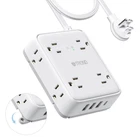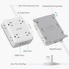 Surge Protector Power Strip with USB Ports - This 12-in-1 power strip with USB C is separately equipped with 8 grounded three-prong outlets. With added 4 USB charging ports (1 USB C), you can power up to 12 devices at once, saving both money and desktop space. All 4 USB ports can automatically deliver optimal charging speeds (USB-A: 2.4A, USB-C: 3.0A max). 1440 Joules Surge Protection - This surge protector power strip will safeguard your valuable devices from surges or spikes, overload, short-circuits, over-currents, and over-heating. Whereas other power strip surge protectors on the market typically only offer up to 1080J. Wall Mountable & 5ft Flat Extension Cord - This wall mount power strip features four foldable mounting holes and four screws, making it easy to install, such as wall mounts, floor mounts, workbench, under desks, and more. The 5 feet flat extension cord (125V/13A) provides the perfect length and flexibility to reach distant outlets. Thin Flat Plug Power Strip - With only 0.3 inches thick flat plug design, the low-profile plug shape of this flat power strip can fit easily behind sofa, bed, furniture and get close to the wall. The 45-degree right-angled thin flat plug ensures it won't block the bottom receptacle of your duplex wall outlet, free it up for other uses. Also, this power strip flat plug has been patented in the US (Patent No.: US D976,835 S). Widely Spaced AC Outlets - This compact power strip features 8 widely spaced 3-prong outlets on the surface and the sides. The wider spacing (2.2 inches) between the grounded AC outlets is perfect for accommodating larger adapters without causing them to get bunched up. This power strip with USB is ideal for organizing office supplies or dorm room essentials.