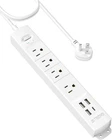 Surge Protector Power Strip: This power strip is ETL listed, This power strip surge protector turns one wall outlet into four with 1440 joules surge protection, protecting your home/office equipment such as tv, computer, printers, copiers, and routers from voltage fluctuations, surges, and spikes. Power Strip with USB: This usb power strip has 3 USB A & 1 USB C charging port, eliminating the need for multiple chargers for your phone, laptop, fire tablet & reader. Great for office, desktop, home, bedside, college dorm room, kitchen, etc. Deliver the faster charge speed up to USB A ports (5V/2.4A) and USB C port (5V/3A) max for each port, (3.4A/17W in total). Ultra Flat Plug & Wall Mountable: The low-profile right angled flat plug design is great for stashing under or behind furniture. Four screw-mounting tabs allow this wall mount flat plug power strip to be securely installed on workbenches, behind the tv, garage, bedside, under counters/desks/cabinets, and dressers. Widely Spaced AC Outlets: We specially designed one ac outlet with super ample space(49mm/1.93") for plugging large power adapters without blocking other outlets, whether as an indoor desktop power strip or a nightstand charging station, it’s easy to plug your pc, monitor, printer, fan, air purifier, etc. 6ft Extesion Cord: This flat plug power strip comes with 6ft flat extension cord (1625W, 125V/13A), helping you get rid of tangling cords and cable clutter. The portable and slim size make it suitable for home office desktop workbench dorm room, etc. Product Description 1 Surge Protector 2 Ultra Flat Plug 3 6Ft Extension Cord 4 16 AWG Heavy Duty 5 Fire-Resistant Q1: Can I use this on 220V? A1: The applicable voltage of this product is 100~250V so it can be used anywhere. Q2: Will this protect my device? A2: The power strip with surge protection, which make it safe and reliable. Q3: How many joules does it have? A3: 1440 Joules. And it can protect your sensitive devices and valuable data from damaging electrical surges. More Choices from TROND Add to Cart Add to Cart Add to Cart Add to Cart Customer Reviews 4.6 out of 5 stars 14,716 4.6 out of 5 stars 14,716 4.6 out of 5 stars 14,716 4.6 out of 5 stars 14,716 Price $14.95 $ 14 . 95 $23.99 $ 23 . 99 $20.99 $ 20 . 99 $23.99 $ 23 . 99 Color / Package White, 1-Pack White, 1-Pack Black, 1-Pack Black, 1-Pack Voltage Compability AC 100-250V AC 100-250V AC 100-250V AC 100-250V Max. Power Rating 1625W (125V/13A) 1625W (125V/13A) 1625W (125V/13A) 1625W (125V/13A) AC Suppression Joule Rating 1440 Joules 1440 Joules 1440 Joules 1440 Joules AC Outlets 4 4 4 4 USB A Ports 3 3 3 3 USB C Port 1 1 1 1 USB Power Output 17W/3.4A 17W/3.4A 17W/3.4A 17W/3.4A Mountable ✓ ✓ ✓ ✓ Power Plug 45-degree angled flat plug 45-degree angled flat plug 45-degree angled flat plug 45-degree angled flat plug