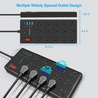 【19-in-1 power strip with usb ports】 - Power strip flat plug With 15 AC outlets and 4 USB ports(1 USB C Port), this USB power strip can charge up to 19 devices simultaneously with no more than 1875W/15A. The built-in smart IC chip automatically adjusts and provides optimal charging speed for your electronic devices with USB power output up to 2.4A/port, USB C port MAX 5V/3A, 20W total. 【Multiple Protection power strip with usb ports】 - This power strip long cord features surge protection rated up to 2800 joules to protect your electronics from spikes and fluctuations. The power switch also features overload protection, which automatically detects external loads and shuts off and disconnects all power at the first opportunity, protecting your equipment well. To prevent problems with the circuit again, please do not exceed its 1875W power rating before resetting. 【Safety multi-plug surge protector with usb ports】 -Power strips with surge protection-ETL safety certified, made of fireproof ABS+PC (Grade: UL-V0, the highest fire rating), can withstand high temperatures up to 1382℉, high-end solid state capacitors to ensure complete protection of your device from electrical short circuits, overheating, overcharging, overcurrent and overvoltage, so it will not heat up during use and keep your device safe 【Mountable Right Angle power surge protector】 - Surge protector flat plug-14AWG extension cord surge protector with flush plug for easy access to tight spaces, even in complex use environments, plus 2 mounting hole locations on the back of the power strip for easy installation on horizontal or vertical walls or under-desk mounting for ease of use.