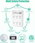 Store New Arrivals Add to Favorite View Feedback Contact Surge Protector Wall Outlet Extender, USB Wall Charger with 3 USB Charging Ports(Type-C and 2 USB-A Smart 3.1A Total), 6-Outlet Extender and Top Phone Holder for Cell Phone, White, ETL Listed Description Amperage 15 Amps Item Shape Flat Total Usb Ports 3 Maximum Current 15 Amps Surge Protection Rating 490 Joules Color white Material Plastic Item Dimensions L x W 5.9"L x 4.3"W Compatible Devices cell phone Plug Type Type B Item Weight 8.5 Ounces Number of Ports 6 Voltage 125 Volts Recommended Uses For Product HOME,OFFICE Special Features On And Off Switch, Surge Protection, Usb PORTS Power Plug Type B - 3 pin (North American) Special Feature On And Off Switch, Surge Protection, Usb PORTS Number of Outlets 6 Total Power Outlets 6 Smart USB Charging Ports Powerstrip: 5V 3.1A shared rating, high-speed USB ports automatically detect charging devices and deliver optimal charging speed, usb-a up to 2.4A per port, usb-c up to 3.1A. NOTE:The Type-C port doesn't support Macbook, Macbook Air, Macbook Pro or any other laptops which needs 14-22V charging voltage Multiplug USB Power strips: 3 smart USB charging ports (1 USB C ) and 6AC outlet Plugs with Mater switch and built-in surge protector . AC 100-240V normal working voltage range. surge protector power strip support 9 electric devices simultaneously, like cell phones, iPad, laptops, lamp,cameras and many other devices Fast Installation & Phone Holder Design: Just plug in for duplex outlet and decor outlet. The plastic prong at the bottom is for reinforcement purpose . For USB receptacle and GFCI outlet, the plastic prong needs to be cut off before using. Also, your cell phone could be put on the top phone holder conveniently when charging Surge protection & Superior Safety-This wall plug expander power strip surge protector wiith usb features 490 Joules surge protection rating to keep your electronics and mobile devices protected from voltage spikes. The Built-in safeguards full protect against over-current, over-charging and over-heating for safe with fast charging Reliable Safety Wall Outlet Extender- This electrical outlet usb wall plug power strip is ETL listed and certified by FCC and RoHS ,and made of Fire-resistant PC shell . Built-in short-circuit, over-voltage and over-current protection can ensure the safety.Our friendly and reliable staff will respond to you within 24 hours. You can purchase with confidence, with our 30-day return and 18-month replacement Product Description Why Alitayee USB C Outlet Extender? Alitayee is a manufacturer of Power Strip and Outlet Extender with professional technology and 20 years of experience in power strip production. We believe the true innovation is all about creating, renewing and improving more effective products that make life better, To assure customers of reliable and the highest products possible from beginning to end, We are dedicated to lifting our quality standards without limits. 9-IN-One USB Wall Plug Extender 3 smart USB charging ports (1 USB C ) and 6AC outlet Plugs with Mater switch and built-in surge protector . AC 100-240V normal working voltage range. surge protector power strip support 6 electric devices simultaneously, like cell phones, iPad, laptops, lamp,cameras and many other devices · 6 Widely-spaced Outlets with Type-C Fast Charging USB Ports · Multi Protection: Surge protector with overload protection protects against spikes and fluctuations. · 3 smart USB charging: With an intelligent circuit design that detects and accommodates the power needs of your device.USB-C: Max 3.1A 15.5W,USB-A:MAX 2.4A,Total:5V 3.1A(Smart IC) · Mini Size & Phone holder Alitayee USB Outlet Extender 6 AC Outlets with Master Switch 125V,15A, 1875W USB(1Type C+2USB-A) Total:5V 3.1A(Smart IC) 110~250V input Surge Protection:490Joules 5.9*4.3*1.4 in 8.5 oz Fast Charging 15.5W 5V 3.1A shared rating, high-speed USB ports automatically detect charging devices and deliver optimal charging speed, usb-a up to 2.4A per port, usb-c up to 3.1A. NOTE:The Type-C port doesn't support Macbook, Macbook Air, Macbook Pro or any other laptops which needs 14~22V charging voltage Surge protection With a built-in 490J surge protector, our outlet extender power strip with usb ports will filter the minor surges in the circuit and shut it off when an overwhelming surge like that caused by lightning occurs. And the shell is made of Flame Retardant Material which is able to withstand temperature up to 1,380℉ (750℃). Easy Installation The USB wall Outlet Extender fits perfectly in regular standard and Decor outlets.Friendly Reminder:The plastic pillar on the back prevents use in GFCI and USB receptacles because of the wider space of the reset button and USB ports.For use in these receptacles,just need cut off the plastic pillar. Reliable Safety This electrical outlet wall plugs with usb ports is high quality , and made of Fire-resistant PC shell .Built-in short-circuit, over-voltage and over-current protection can ensure the safety. Phone holder The top holders keep smart phones in a convenient place while charging.No Desktop Space Occupation,Fit for Most Wall Socket. Compact Size and Compatible Compact Size and Worldwide Voltage-the USB Vertical Power Strip provide 6 AC Outlets and 3 Fast Charging USB Ports(1 Type-C and 2 Type-A,5V3.1A,15.5W),Compatible many devices and for travel,office,dorm ,home,and so on. ABOUT US We offer the best prices around on high quality products. Our E-store includes media such as books, movies, music and games while offering electronics, toys, sporting apparel, clothing, tools, general home, garden items and more. SHIPPING We are always working hard to ensure your package arrives as soon as possible. Please understand that some factors like weather, high postal traffic, and the performance of shipping companies are outside of our control. We offer free shipping to the lower 48 states and ship within 2 business days of payment, usual