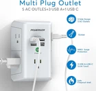 Surge Protector with 4 USB Ports - Multi Outlet Extender for Home, School and Office - ETL Listed, White About this item Multi Plug Outlet: Unique 3 Side Design Power Strip with 5 AC outlets and 4 USB ports(4.2A Total), compact size of 5.5*3.8*1.7 INCH. With built-in surge protector that meets most of your needs in life, allowing multiple devices to be charged simultaneously. Smart USB Charging Ports: The total output of 4 USB ports is 5V/4.2, can auto-detect charged devices and deliver optimum fastest charging speed up to 5V/2.4A (max) each port, USB-C up to 3A. NOTE: The USB-C port doesn't support Macbook, Macbook Air, Macbook Pro or any other laptops which needs 9~22V charging voltage. Widely Spaced & Fast Installation: This power outlet with 5 AC outlets built-in 1680 Joules surge protector with 2.1 inches long space in between; Large spacing can charge 5 big plug at the same time without blocking; Just plug in for duplex outlet and décor outlet. And can use the screw included to secure it on duplex outlet. 5 AC Surge Protector Outlet Splitter: 3 level complementary Surge Protector Circuit which composed of TVS, MOV (metal oxide varistor), GDT (gas discharge tube), with minimum 1680J energy absorbing capacity, could protect your devices much more quickly. Fire-resistance shell with flame retardance at 1382℉ makes it more durable and longer lifetime. It truly provides great protection of your precious plugged-in devices. Our After Sale Service: ETL Certified, Our friendly and reliable customer service will respond to you within 24 hours. You can purchase with confidence, with our 30-day return and 12-month replacement.