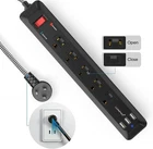 Surge Protector, Power Strip with USB, Lightning Protection 5-Outlet (1200W/10A,1200Joules) 3 USB Charging Ports (5V/3.1A) 5Ft Extension Cord, Slide Safety Cover, Black (Bin 5) 【SAFETY GUARANTEE】: 1200Joules Surge protector with overload protection protects against spikes and fluctuations, fire-retardant casing which can stand temperature up to 1382℉(750℃), internal safety shutters, grounded protection and more. ETL Listed and FCC Certificated. 【HEAVY DUTY CORD】: 5 ft pure copper heavy-duty UL listed power cord and integral copper bar improve product conductivity, durability and reduces heat build-up. 【SAFETY COVER】:Use the slide safety cover to seal off outlets, Close the safety cover when not in use to prevent children from touch 【SMART USB PORTS】: This USB power strip has 5 AC outlets, 3 smart USB ports 2.4A/port (max), (5V/2.4A in total). The USB charging ports with smart IC. 【RIGHT ANGLE FLAT PLUG & WALL MOUNTABLE】: The flat plug is perfectly suitable for narrow spaces. 2 mounting holes on the back make this wall mount power strip firmly installed in various applications. The 45° angled design will not block the use of the bottom socket. Product Description Specification How to con-tcat us Click the store name under Buy Box and then click the button named ask a question Max Power: 1200W Rated Voltage: 125v RatedCurrent: 15A USB Charger Power Rating: 5V-0~3.1A USB ChargerInput: 100-250VAC 50/60 Hz USB Charger Output: 4*5V/2.4A (MAX 3.1) Surge Protector Power Strip 5 Outlets3 USB Ports Power Strip with USB Protect your valuable devices from damage 5-outlets power strip with 3 USB charging ports is the ideal choice for you Unexpected voltage spikes,fluctuations and power surges can cause damage to your valuable devices (TV/PC/Phones/Tablet/Laptop). It is rated 1200 joule and has a damage-resistant housing which protects circuits from fire, impact, rust and scratches Ultra Compact and Space-Saving Smart Charging Maximize the Charge Speed Widely Compatible Dependable Safety Protection Overload Protection Advanced surge protection technology protects the strip and all connected electronics from unexpected increases in voltage. The fireproof shell can withstand temperatures up to 1382°F (750°C), which maximizes safety performance. SLIDE COVER DESIGNED It can effectively prevent the insertion of foreign objects, making the product safer to use, and prolonging the product life. Overheating Protection An internal safety shutter prevents objects from being inserted into the outlet, keeping your home safe. DURABLE POWER CORD Material: Fire-resistance braided rope Cord length: 1.5 meters/5 feet The power cord made with traditional craftsmanship which is more textured and safer to use. 3 SMART USB PORTS Compatible with iPhone/iPad all series products, Samsung Galaxy, Huawei and other USB devices MOUNTING HOLES There are two mounting holes on the back. In order to save space, you can use the mounting holes to fix it anywhere.