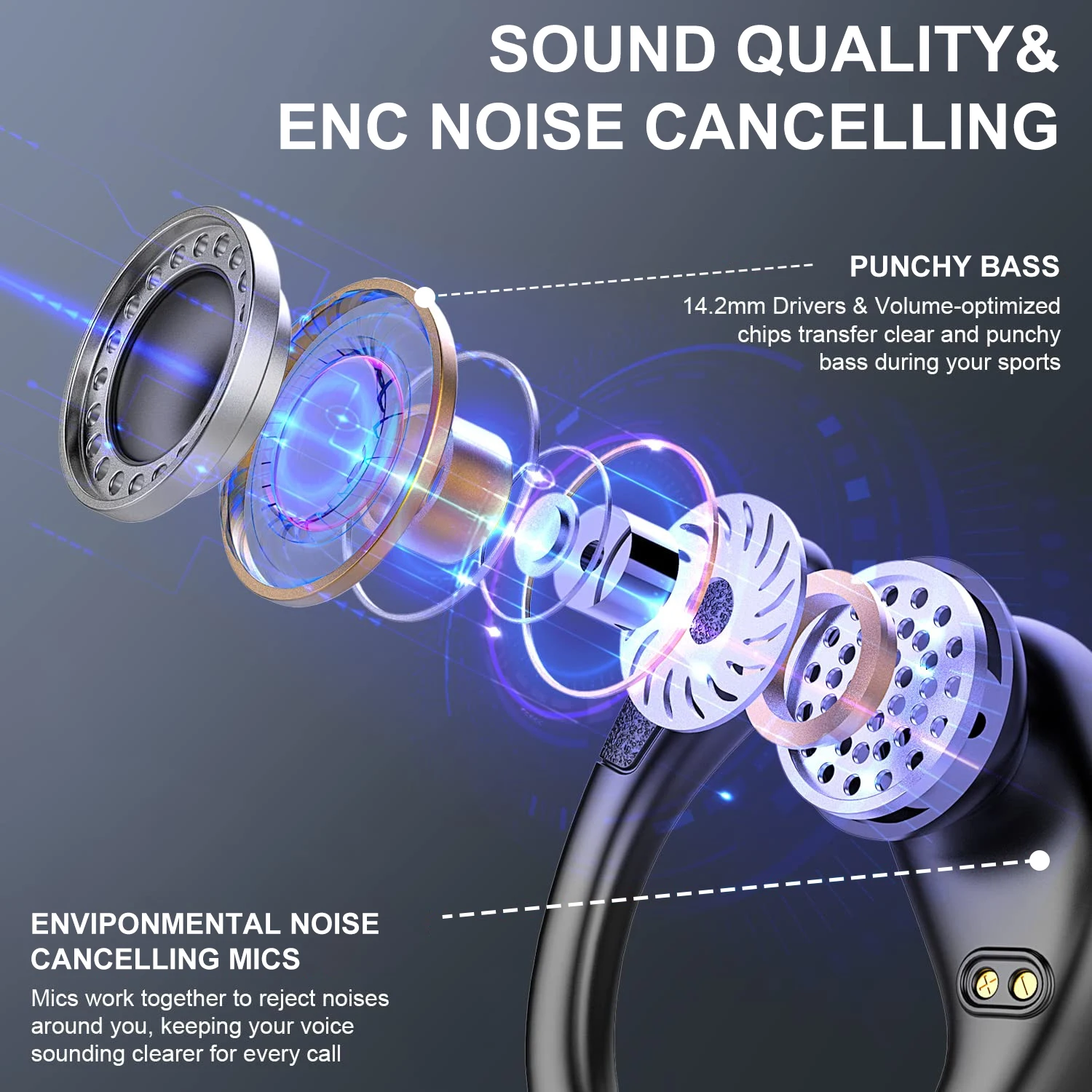 Absolutely love these earbuds! The sound quality is amazing with deep, punchy bass that keeps me pumped during runs. They stay snug in my ears no matter how intense my workout gets, and the Bluetooth 5.3 connection is super stable. Battery life is impressive—I rarely need to recharge. Perfect for sports and everyday use!