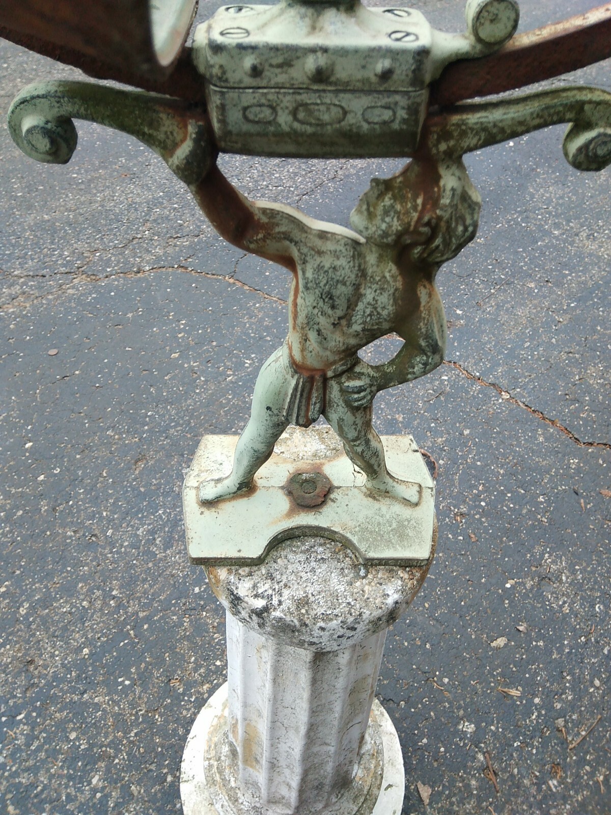 up for consideration is fine Old Swedish Bronze and Iron Garden Armillary Sundial. It dates about 70 years of age and stands 48 inches in height. The sphere measures 16.5 inches in diameter with overall length of 24 inches. It is signed on the base "Hercules Made in Sweden Original A.R. Aronsson". The piece has great coloration and form. It rests on a cement stand. It is missing it's bronze arrow directional. Please see photos as part of the description...If you have any questions, concerns or something to share...please message me. Free Local pick up and delivery...Free short distance delivery... Buyer pays shipping. Lower 48 states only please thanks...Please note the piece will be disassembled for shipping. B e s t R eg a rd s, J ohn J oh n n yC ry stal Est. 1987