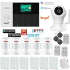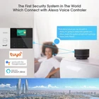 1. Compatible with Alexa and Google home: This alarm sysetm works with Amazon Alexa and Google Home for voice control ( Alexa and google home devices not included ). Just ask app Alexa on your phone to Arm / Disarm/ the whole system in a specific instruction. Remote control your Alarm system anywhere in the world with your smart cell phone, no need repeated operation! 2. WiFi & GSM Support and Auto Dialer Function: This alarm system support different alarm message info(APP Message Push / SMS Message / Voice monitoring / Sim card phone call).Wifi way. It will push alarm notification via free app when it is triggered. GSM Way: Insert 2G SIM card into the alarm system and save your phone number on it, then it will send message or call your cell phone when alarm alerts. Product Overview Tuya APP IOS/Android WIFI GSM Home Alarm System+Tuya WiFi IP Camera+4 Wired Zones Details Package Including: Home Alarm System Main Panel * 1 Pcs Wireless PIR Infrared Detector * 5 Pcs Wireless Door / Windows Sensor * 6 Pcs Remote Control Key * 3 Pcs RFID Tags * 3 Pcs Tuya WiFi HD 1080P 1MP Camera(Support Automatic Tracking) * 1 Pcs Wired Siren * 1 Pcs(110dB) Built-in Siren * 1 Pcs(85dB, the siren is built-in main panel) AC Adapter * 1 Pcs English User Manuel * 1 Pcs (NOT Including GSM Sim Card and TF Card) Question & Answer: Q: Can this alarm system work with WIFI and GSM Sim Card together? So if the WIFI failure, can switch GSM/GPRS mode to work. A:Yes. User can connect alarm system with WIFI and GSM Sim Card to work. And when Alarm System be triggered, it will push alarm message to the APP via WIFI. And if the WIFI failure, will change GSM/GPRS mode auto Dial Out. Q: It just with WIFI in my house and without GSM Sim Card,can I use this alarm system? A: Yes. Alarm System can work in WIFI mode only. Q: Can I add additional remote controllers, door sensors, pir sensors, smoke detectors, gas detectors or other sensors to work with this alarm system? A: Yes. Alarm system can work up to 99 wireless sensors and wireless Siren, unlimited Wifi Camera. Q: Does the alarm panel with backup battery? A: Yes. Alarm system with internal rechargeable backup battery. It can support work when AC Adapt is cut. Main Function And Feature: 2.4 inch TFT display screen, concise user interface and menu hint design Main interface status bar, date/clock indication, fairly obvious alarm host status. Built-in powerful performance CPU master based on 32-bit Cortex-M3 core Based on u cos C III operating system with multitasking design, great user operation experience WiFi/GSM/3G/GPRS intranet alarm system, support different alarm channels, like APP push/SMS/voice monitoring/intranet center etc. to ensure the alarm performance stable and reliable Support SMS arm/disarm and voice arm/disarm Support up to 100 learning/storage location for remote control, RFID cards and wireless detector Support many defense zones, such as gate, SOS, bedroom, window, balcony, perimeter, smoke, gas, carbon monoxide, water leaking, etc. Support the main power malfunction, backup power shortage, tamper alarm and other extended alarm. Support entry/exit zone, indoor zone, perimeter zone, 24-hour zone, etc Up to 5 groups preset alarm phone numbers, SMS on/off and dial on/off can be set respectively Support external wireless siren, Support timing arm and disarm Can store and inquire daily operation records and alarm records. GSM network clock synchronization, to ensure accurate color, and support country time zone setting. Support multi-language menu display, voice prompts and alarm SMS setting. Can record 20 seconds voice message and alarm voice. Telephone function, support 5 groups re-dial number. User-friendly APP operation experience and user interface. Push Arm/disarm message to app. Support APP remote arm/disarm, parameter setting and accessory management. Online GPRS to obtain equipment status, automatic alarm when offline. Reserved remote GPRS TCP / UDP protocol channel, compatible with multiple alarm center networking protocol to facilitate network alarm. Support Up to 8 Wireless Smart Sockets Item Specification: 1. Home Alarm System Main Panel(Including Back-Up Battery and built-in siren) Wireless Frequency: 433(MHz) Built-in siren(70dB/m) Standby Current: less than 35mA Alarm Current:less than 120mA GSM transmission power: 2W WIFI Frequency: 2.4G, built-in wireless internet protocol IEE802.11b/g and TCP/IP protocol stack WIFI receiving sensitivity: -86dbm; Emitting power: 18dbm Input:AC100-240V, Output:DC5V-1A Control Range:250-500 Ft(in open area) Working Temperature: -15C~55C(5F~130F); Humidity:Less than 90% Dimension:184*116*22mm 2. Motion PIR Infrared Detector(Battery Included) Wireless Frequency: 433MHz Standby Current: less than 12uA, Alarm Current:less than 15mA Operation Temp: -10C~50C;Humidity: 90% Installation Height: About 2M. Installation Angel:About 60~110 Detecting Distance: 5-8M Transmission Time R1s Transmit Distance: Outdoor 100M(in open area), Indoor:10~15M Dimension:105mm*60mm*40mm(about 110g) 3. Door / Window Sensor(Battery Included) Wireless Frequency: 433MHz Operation Current:8~15mA, Quiescent Current:3uA Operation Temp: -10C~50C;Humidity: 90% Installation: less than 15mm between 2 parts. Transmit Distance: Outdoor 100M(in open area),Indoor:10M Dimension:71mm*36mm*15mm(about 50g) 4. Remote Control Key(Battery Included) Wireless Frequency: 433MHz Operation Current:10MA , Sending Distance: Outdoor 80~100M(in open area), Indoor:8~10M Operation Temp: -10C~50C;Humidity: 90% Dimension:58mm*37mm*14mm(about 35g) 5. Wired Siren 110dB/m Wired connect to Main Panel Operation Temp: -10C~50C;Humidity: 90% Dimension: D55mm*H55(about 75g) 6.RFID Tag Dimension:10mm*20mm(about 5g) RFID Access Function 7. Tuya WiFi Camera Features: 1. 360 View & Motion Tracking: Automatically senses and tracks the action in your home in full 360 Smart wifi camera indoor Cover every angle with 355 horizontally and 270 vertically, Motion Tracking and Real-time Alert -