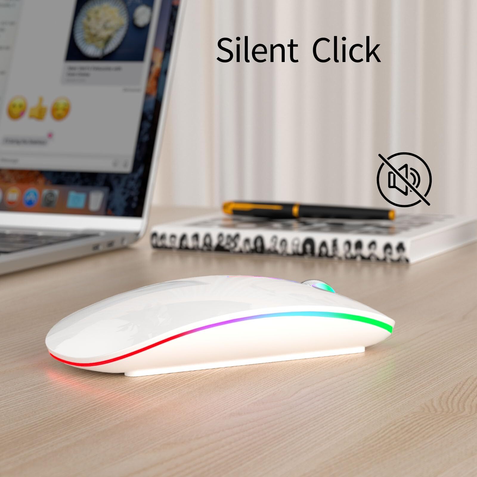 2 IN 1 CONNECTION: 2.4 GHz wireless mouse provides stronger anti-interference ability, a faster transmission speed and a more reliable connection. The 2 in 1 receiver works with computer, laptop, desktop with USB, type-c port, plug and play. 4 ADJUSTABLE DPI LEVELS: Professional chip (PAW3212) provides precision, smart cursor control over many surface types. To meet the needs of different groups, computer mouse wireless for laptop with 4 levels of DPI, 1200/1600/2400/4800 DPI. Battery Indicator: Visible battery indicator design at the bottom of the mouse enables you to know the battery level and charge the mouse in time. Say goodbye to battery anxiety. (It only lights up while using.) RECHARGEABLE COMPUTER MOUSE: Built-in rechargeable battery, could be recharged easily with the included USB C cable. Silent click mouse reduces 90% noises, which makes it an ideal office/home/travel mouse. LIGHT UP MOUSE: The led wireless mouse designed with cool breathing light on mouse around and scroll wheel, it brightens your day and adds more fun to the office life. You can easily turn off the light to save power.